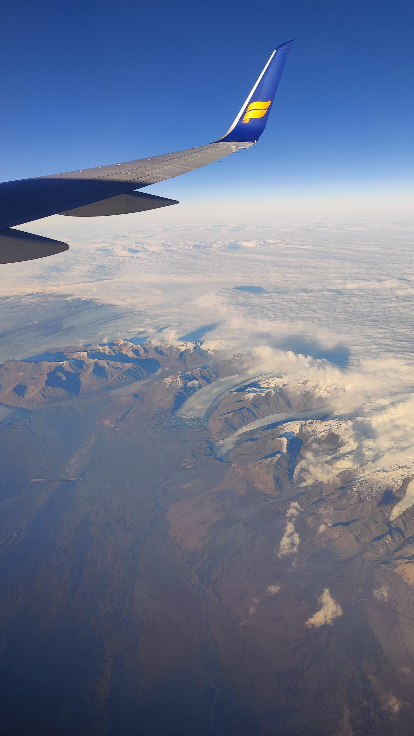 Anflug auf Island, Südküste mit Gletschern