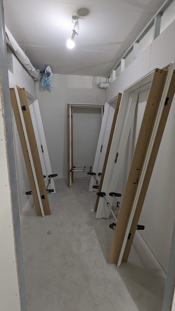 Die Maler waren noch im Gange, deshalb mussten die Türen erstmal in einem der Lagerräumen gelagert werden.