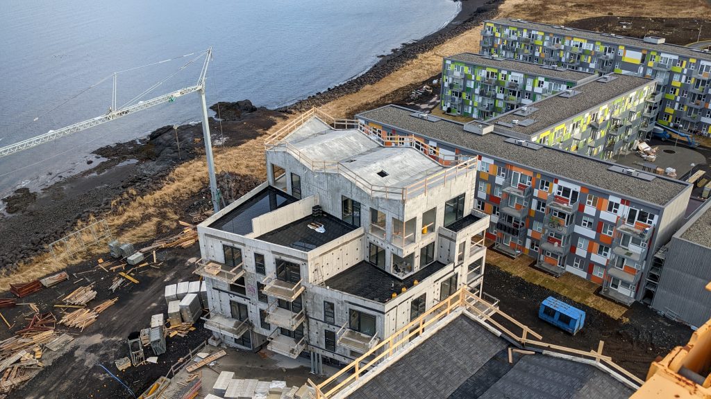 Häuser aus Beton sind relativ schnell, und ich denke auch relativ einfach, zu bauen. Sie sind langlebig und wartungsarm, was bei dem rauen Wetter definitiv ein Argument ist. Ein großes Problem ist hier tatsächlich der horizontale Schlagregen, der mit so viel Druck auf die Hauswände prasselt, dass sogar die kleinsten Risse im Beton zu Problemen werden können. Deswegen müssen alle Wände komplett abgedichtet werden. Das ist bei Beton einfacher als zum Beispiel bei Holzverkleidungen o.ä. Vermutlich ist das auch der Grund, warum die Blechverkleidungen hier so beliebt sind. Aber zurück zu den Betonbauten: Sie sind relativ schnell zu bauen, was momentan wichtig hier ist. Ich habe aus mehreren Ecken gehört, dass ganz viel gebaut werden muss und dass es riesige Projekte mit extrem vielen Appartements gibt. Das ist auch der Eindruck, den ich bekommen habe. Bei unseren Wochenendtouren sind wir an sehr vielen Baustellen vorbeigekommen, wo überall Betonhäuser aus dem Boden gestampft wurden. Der Tourismus in Island wird immer mehr. Im Sommer kommen über 2 Milionen Menschen nach Island. Die müssen auch irgendwo unterkommen und vor allem auch irgendwas essen. Das stellt die Isländer vor eine große Herausforderung, denn dann sind auf einmal mehr als 4 Mal so viele Menschen auf der Insel.