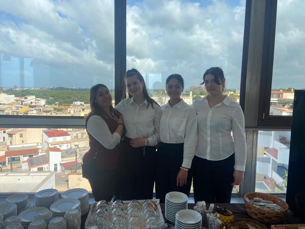 An unserem ersten Tag haben wir im Service beim Eindecken, Aufräumen, Bedienen, Beraten und Wegräumen von Geschirr geholfen. Beim Frühstück haben wir unsere neue italienische Kollegin kennengelernt, die uns tatkräftig unterstützt hat.