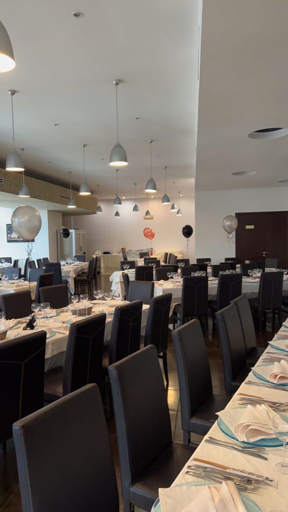 Gestern hatten wir Schichtdienst und unsere erste Schicht begann bereits um 7 Uhr. Wir haben die Tische abgeräumt, abgewischt und neu eingedeckt. Die zweite Schicht ging von 19 bis 22 Uhr . Die Veranstaltung dauerte jedoch noch sehr viel länger. Es gab eine Geburtstagsfeier mit 120 Gästen, im Frühstückssaal haben Teenager gegessen und in einem anderen Saal waren sogar Leute aus Deutschland .