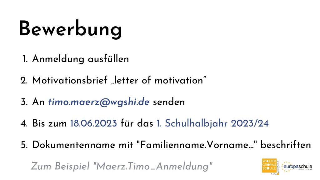 Nach einer fast einstündigen Präsentation, konnten alle Teilnehmer*innen allgemeine wie auch persönliche Fragen zum Thema stellen. Nach der Infoveranstaltung zu dem neuem Bewerbungsverfahren gibt es hier noch einmal den entscheidenden Teil der Präsentation zum Nachlesen.