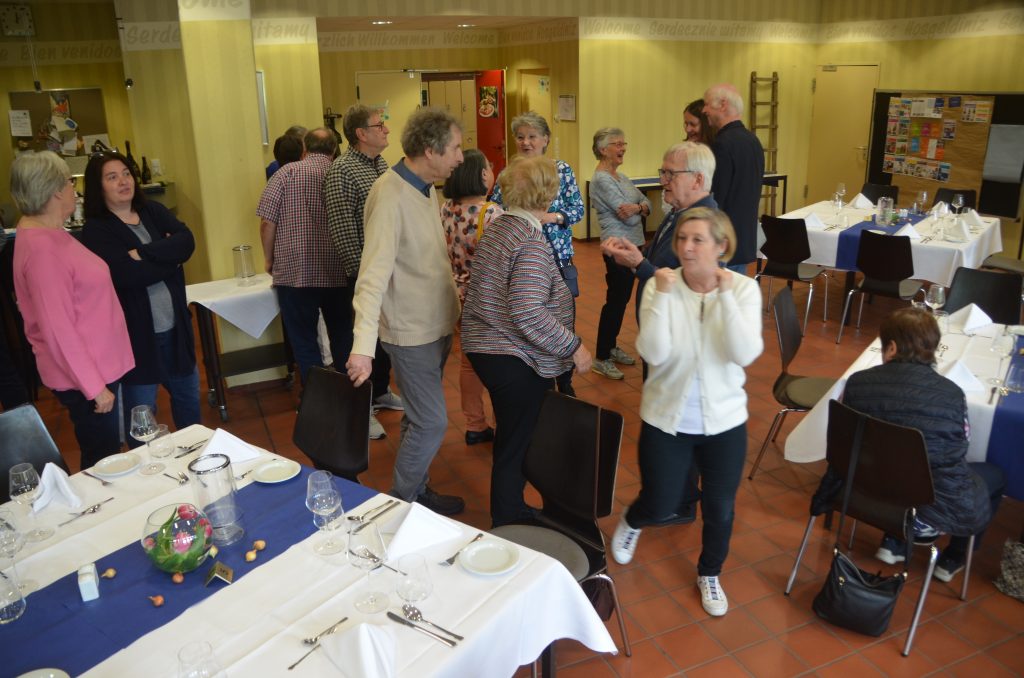Der Arbeitskreis Angoulême hatte die Planung übernommen und die ehrenamtlichen Kolleginnen und Kollegen der weiteren Arbeitskreise zum Mittagstisch eingeladen. Das Essen wurde von französischer Musik und Fotos per Beamer umrahmt.