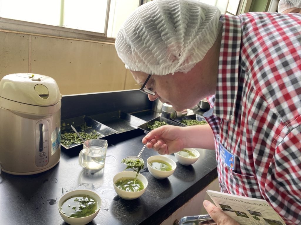 Anschließend haben wir eine Teeplantage und eine Teeproduktion besucht. Ausgerechnet fand heute die Ernte des Second Flushs, der zweiten Ernte statt. Hierbei wurde uns sehr eindrucksvoll und anschaulich der Prozess des grünen Senchas und des Gyokuros, der hochwertigste Blatttee Japans von der Ernte bis zum fertigen Tee an mehreren Standorten gezeigt. Der Produktionsleiter und der Inhaber der Teeproduktion haben sich sehr viel Mühe gegeben uns alle Verarbeitungsschritte genau zu erläutern. Wir freuen uns sehr dieses neu erworbene Wissen im nächsten Jahr in der Fachtheorie Ernährung, der Bäckerei und der Küche zu unterrichten und von unseren Erfahrungen zu berichten. Denn der Geruch und die eindrucksvollen hoch technisierten Maschinen waren für uns ein besonderes Erlebnis, was wir gerne mit unseren Schüler*innen und Kolleg*innen teilen möchten.