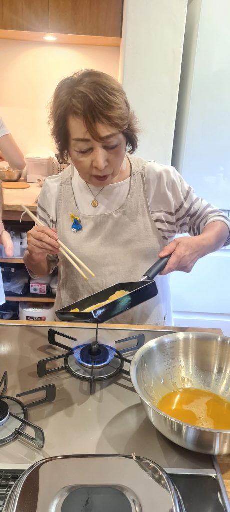 Aiko Tanaka San zeigt uns die Zubereitung von Tamagoyaki.