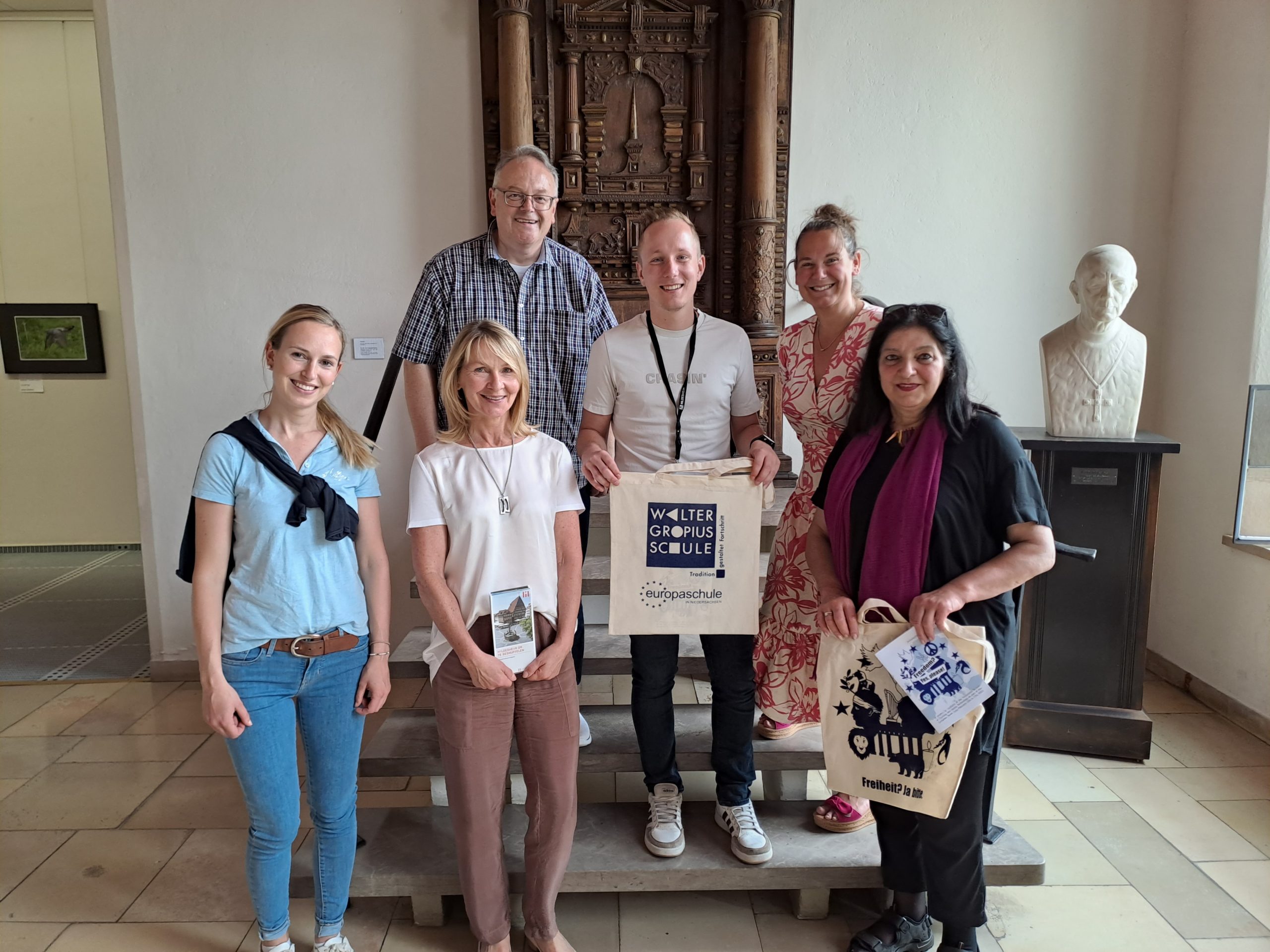 Bürgermeisterin Beate König begrüßte im Rathaus der Stadt Hildesheim die Schulleiterin der Aeres Velp VMBO Berufsschule, Frau Mayke Rensen, und ihren Kollegen Mart Messink, der niederländischen Partnerschule der Walter-Gropius-Schule im Rahmen des Erasmus+ Programms.