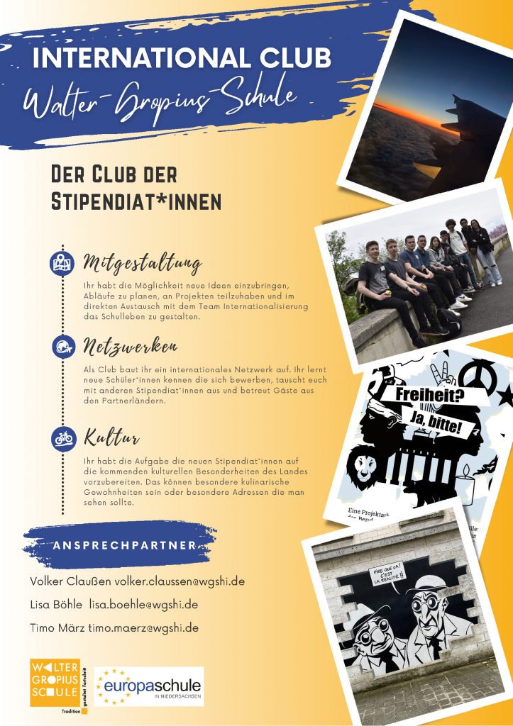 Am 29.06.2023 hat sich zum ersten Mal der International Club in einer Videokonferenz getroffen. Frau Böhle, Frau Husemann, Herr Claußen und Herr März haben dabei mit den Schüler*innen und Lehrer*innen die ersten Ziele und Absichten des Clubs angesprochen und erste Ideen und Anregungen gesammelt. Um den Austausch und die Vernetzung aller Beteiligten voranzutreiben, wird das nächste Treffen im neuem Schuljahr in Präsenz in der Walter-Gropius-Schule stattfinden.