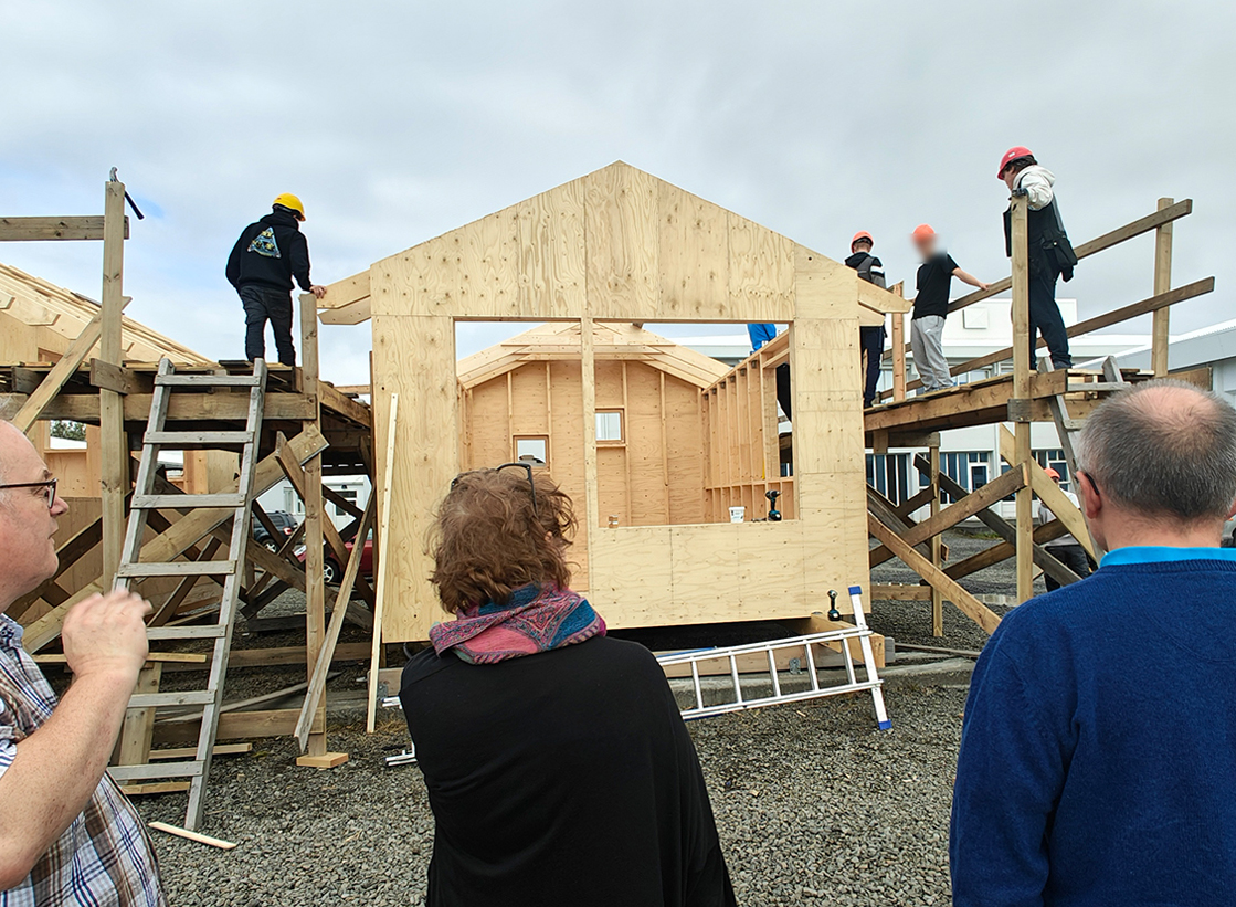 So wird hier über ca. 1 Jahr an zwei Ferienhäusern gelernt. Vom ersten Ausrichten der Tragkonstruktion bis hin zur Innenaustattung mit Elektro- und Sanitäraustattung wird hier alles von den Schüler*innen fertiggestellt.