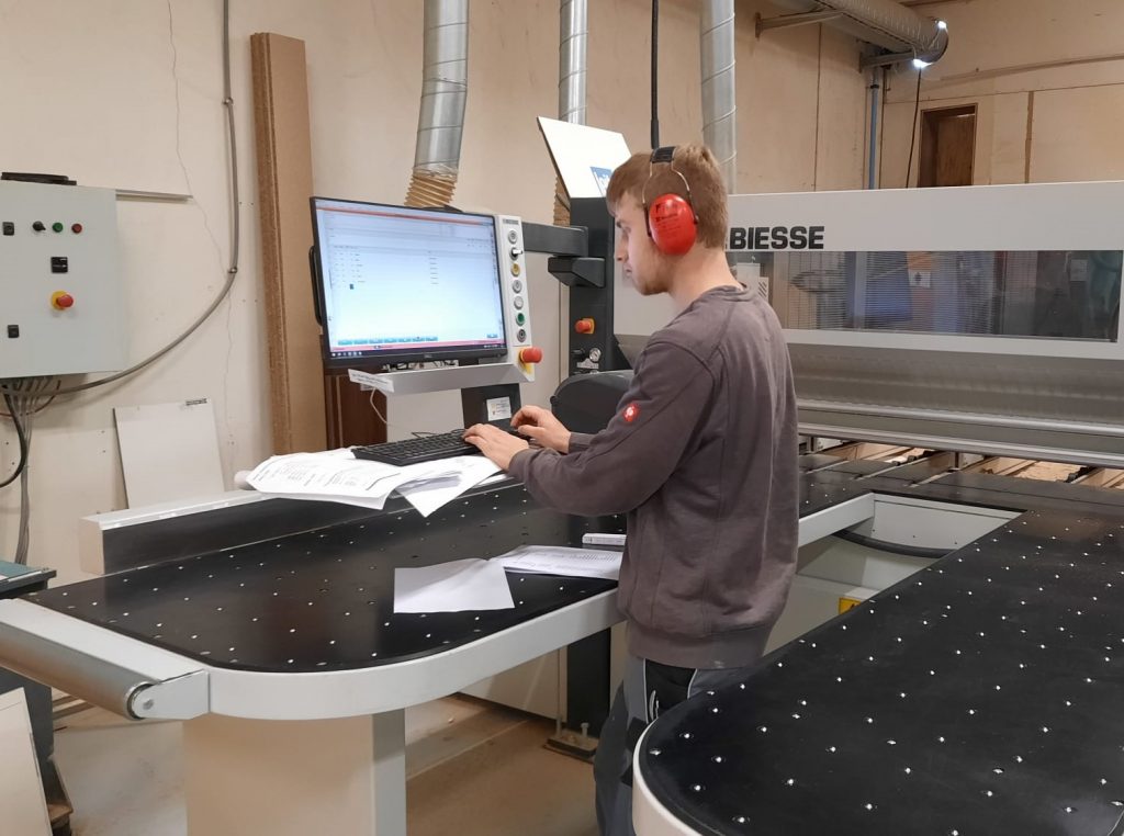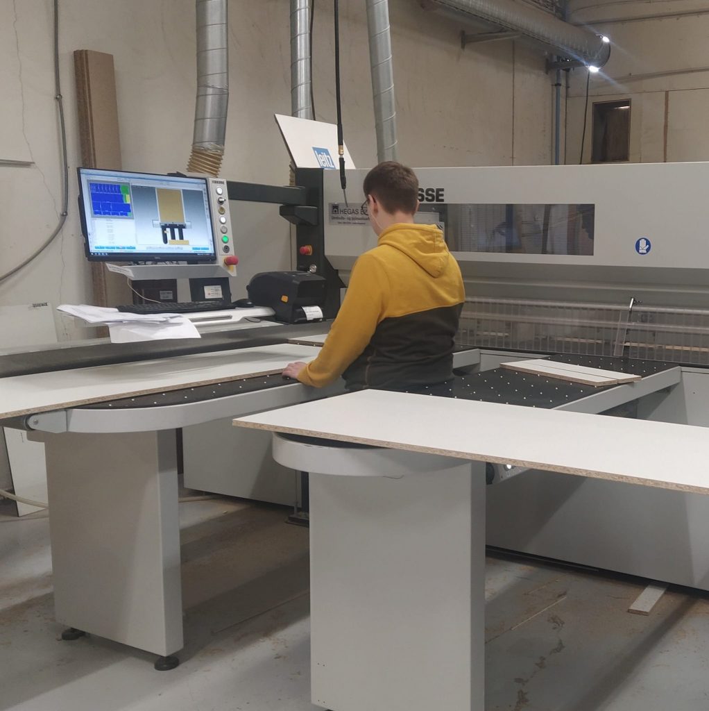 Dann ging es an die Plattensäge, wo wir noch eine Schnittoptimierung für ein anderes Möbel, für welches wir Teile zuschneiden sollten, erstellten.