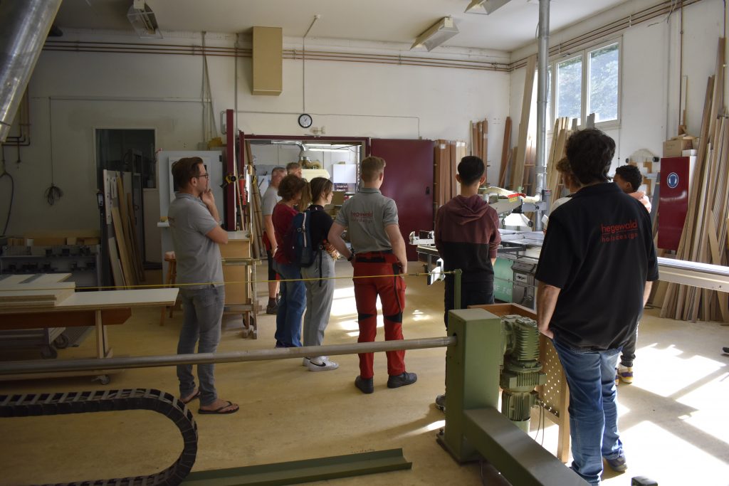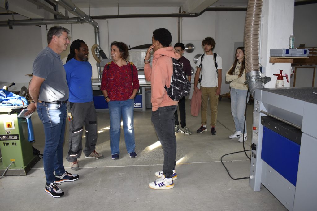 Am heutigen Tage habe die angehenden Tischler*innen die Betriebe Tischlerei Süßmann, Hegewald Holzdesign und Möbelbau Kaether & Weise besichtigen können. Dabei wurden die Gäste aus Angoulême herzlichst von den Betrieben empfangen. Die Schüler*innen konnten einen kleinen Einblick in die Werkstätten erhalten und wichtige Informationen für ihr dreiwöchiges Praktikum. Fragen wie, welche Arbeitszeiten gibt es oder wie komme ich zum Betrieb? Es fanden sogar schon erste Fachgespräche über die Maschinen und die Materialien statt.