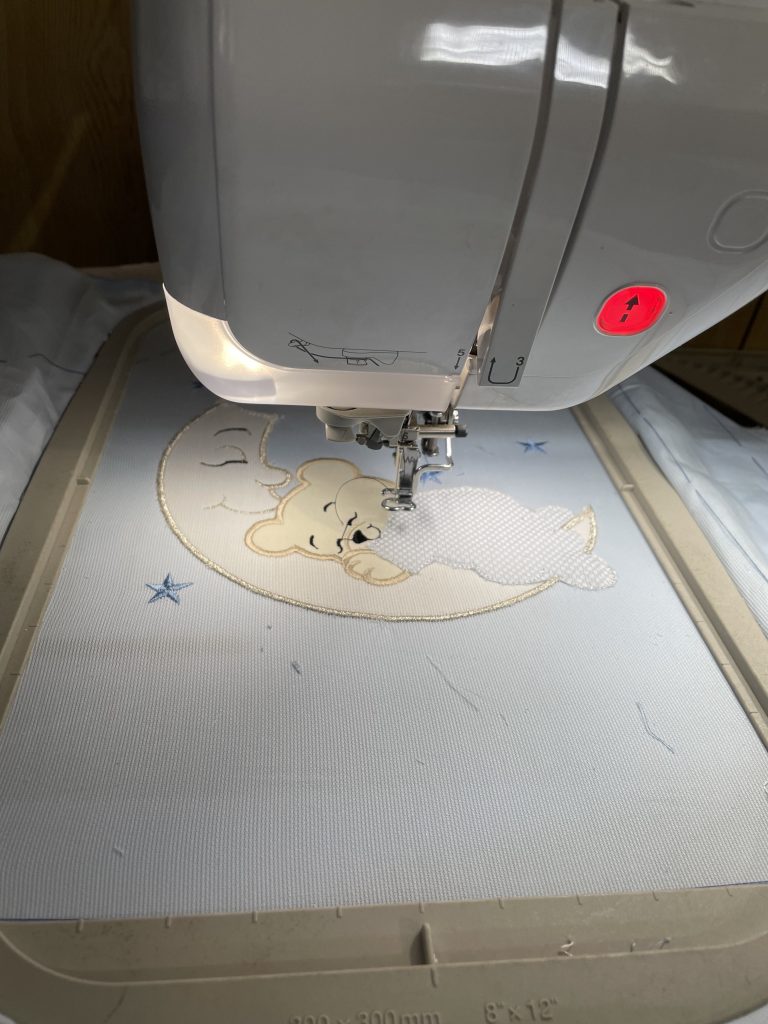 Wir durften an dieser beeindruckenden Maschine arbeiten und verschiedene Stickereien anfertigen.