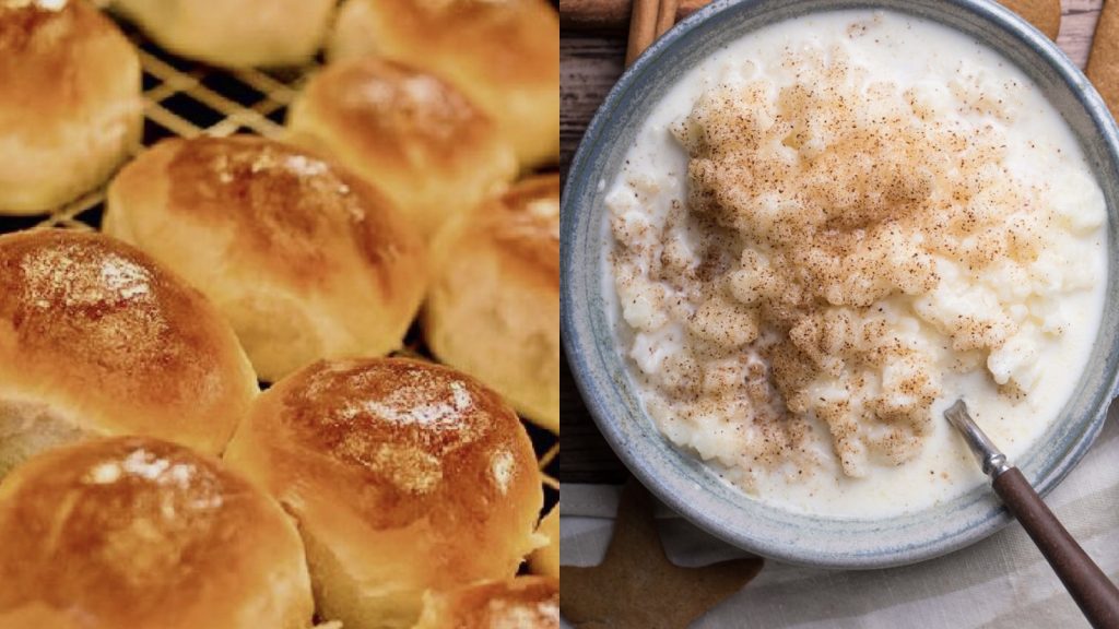 Zum Frühstück gibt es Kardemommeboller ,welches weiche, süße Brötchen sind und Marmeladen. Außerdem bereiten wir Grøt zu, was ähnlich wie Porridge ist und hauptsächlich mit Zimt und Zucker gegessen wird.