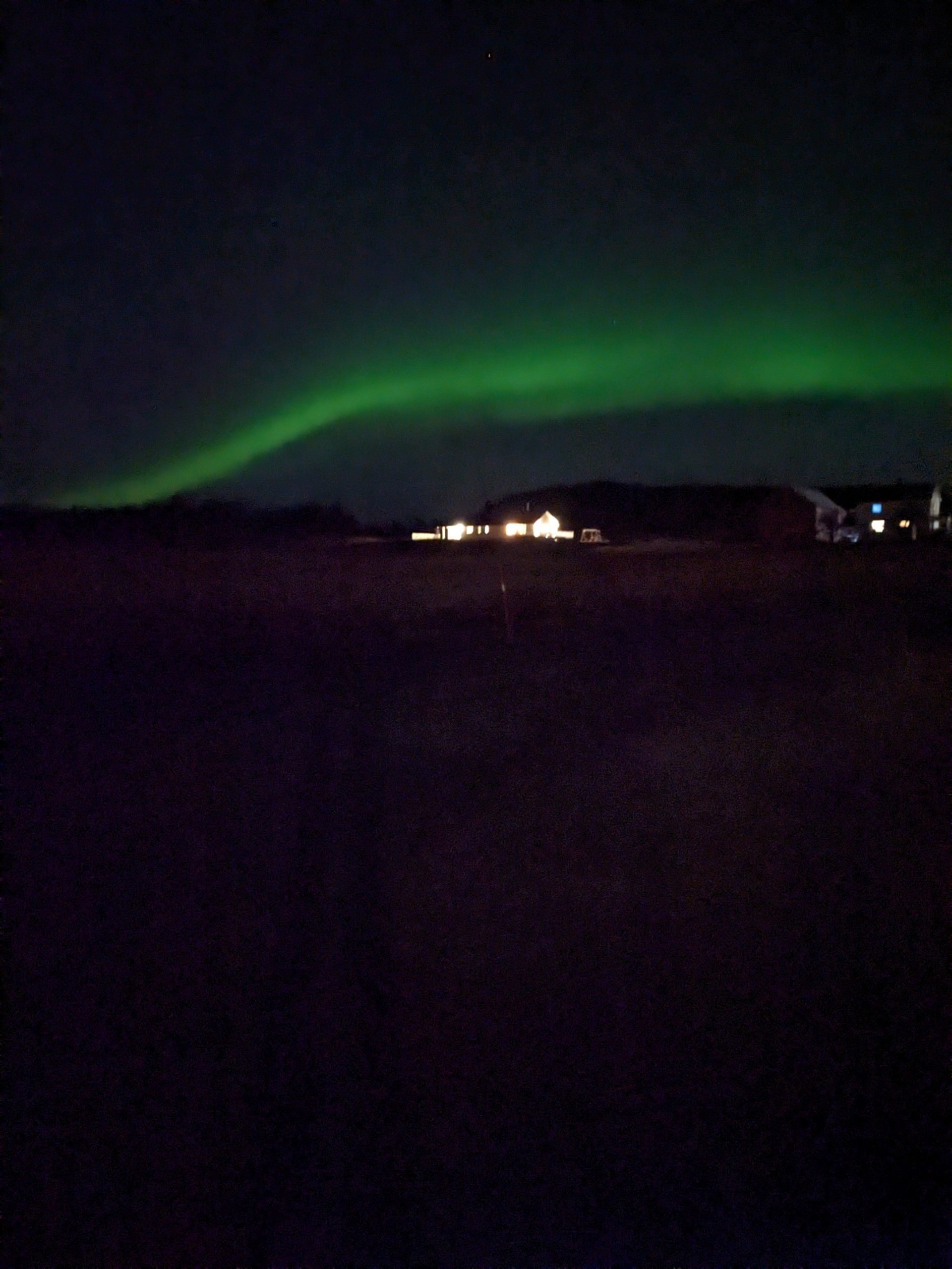 Gestern Abend konnte man sehr gut Polarlichter erkennen. Das lag daran, dass die Temperatur auf -13° gesunken ist, und der Himmel deswegen sehr klar war.