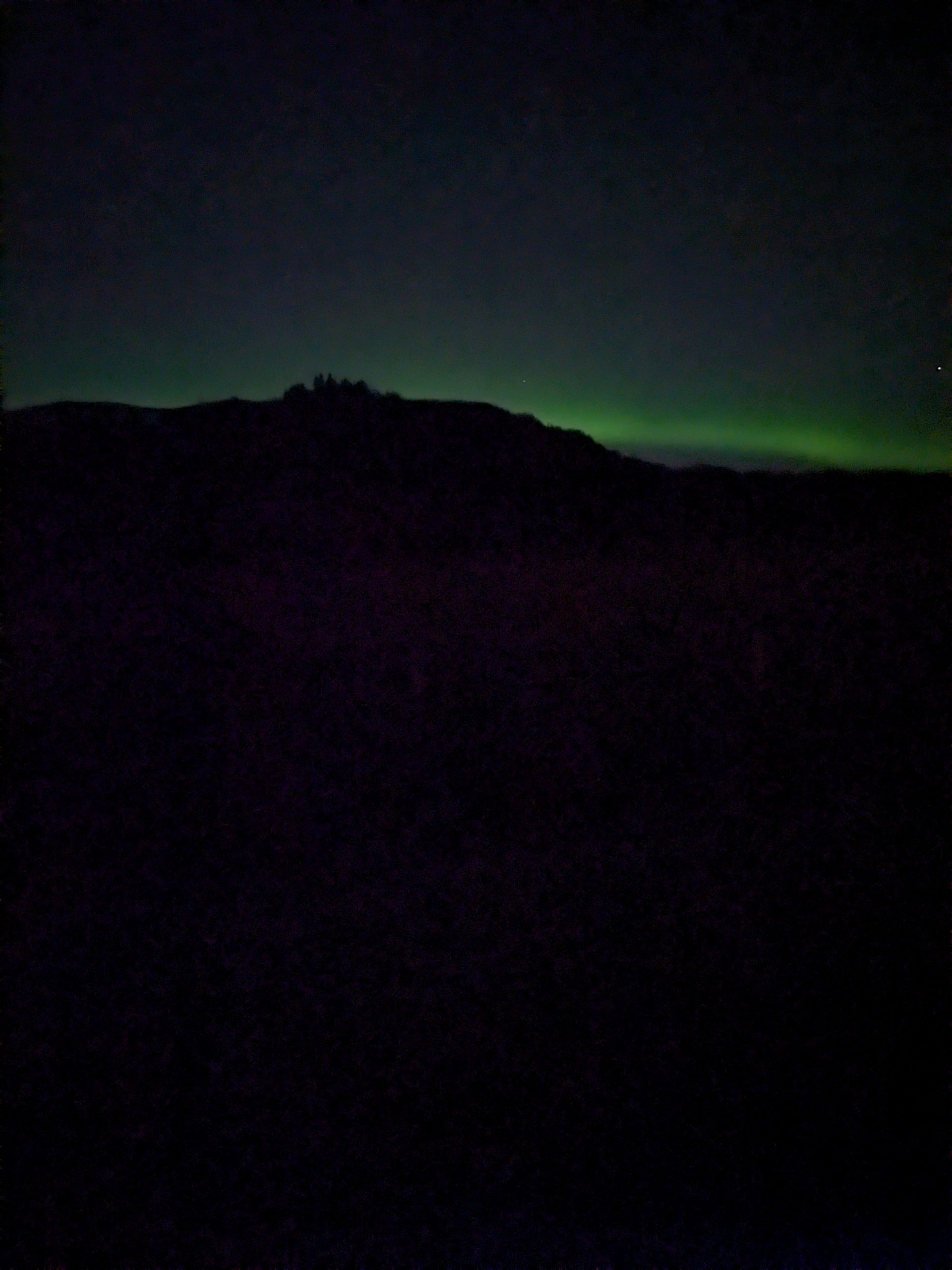 Gestern Abend konnte man sehr gut Polarlichter erkennen. Das lag daran, dass die Temperatur auf -13° gesunken ist, und der Himmel deswegen sehr klar war.