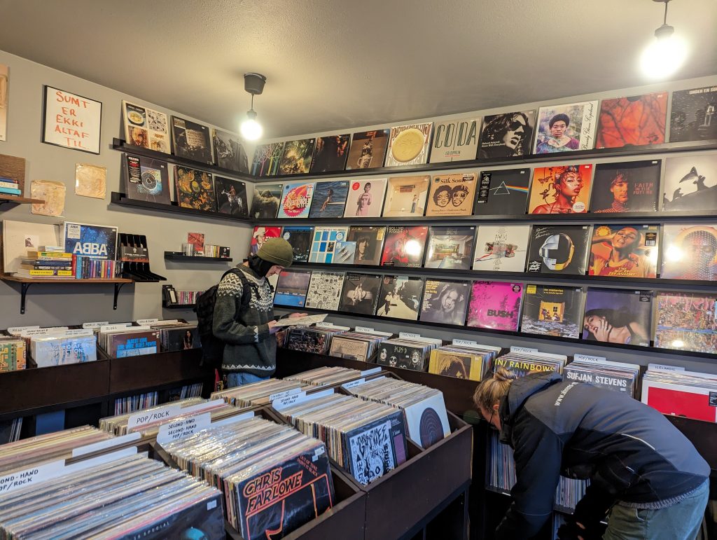 Es ist uns ein wichtiges Anliegen zu erwähnen, dass wir schon sehnsüchtig auf diesen Moment gewartet haben. Den Plattenladen, welchen wir schon beim letzten Besuch in Reykjavik erspäht hatten, wurde heute endlich auseinander genommen. Er war unser einziges Ziel heute. Mehr als zu sagen, dass es ein wundervoller Zeitvertreib ist, in diesem perfekt bestückten Laden zu stöbern, kann man nicht. Es ist eine kleine Flucht vor dem ungemütlichen Regenwetter vor der Tür, in ein Land voller Musik.