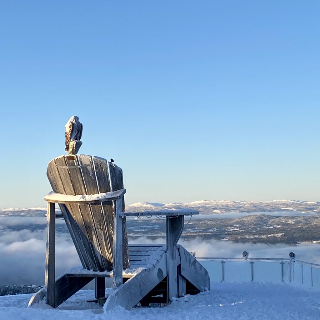 Am Sonntag ging es auf den höchsten Punkt Steinkjers, Oftenåsen ist 336m ü.d.M. und vom Gipfel aus kann man über die gesamte Stadt gucken. Der Weg hinauf ist sehr steil und ohne geeignete Schuhe kommt man den eisigen Pfad nicht hoch. Der Wanderweg wurde von zwei Einheimischen ausgebaut und mit Holzfiguren von Einheimischen Tieren bis hin zu Märchen- und TV-Figuren bestückt.