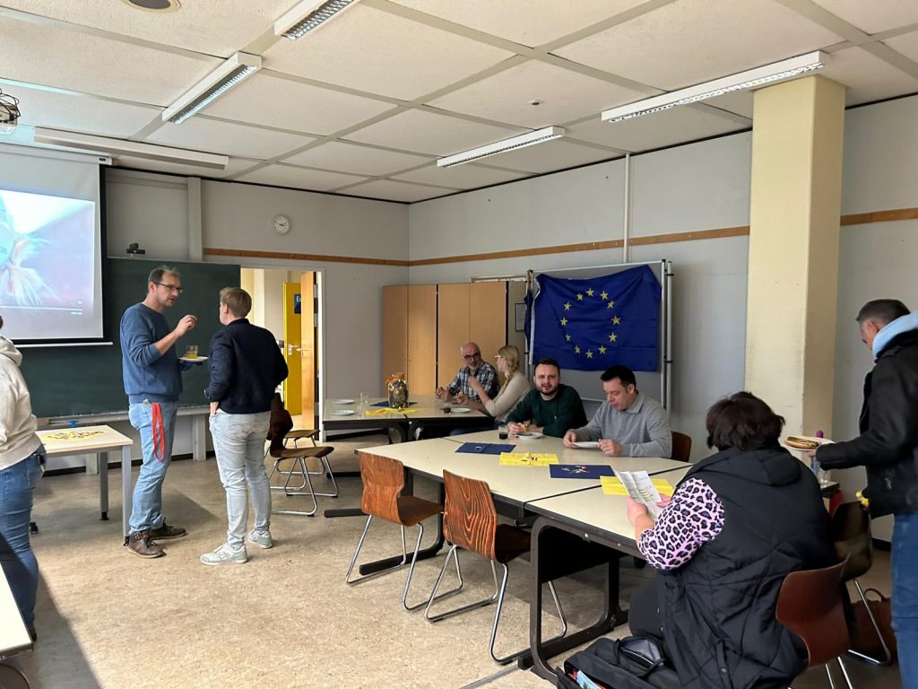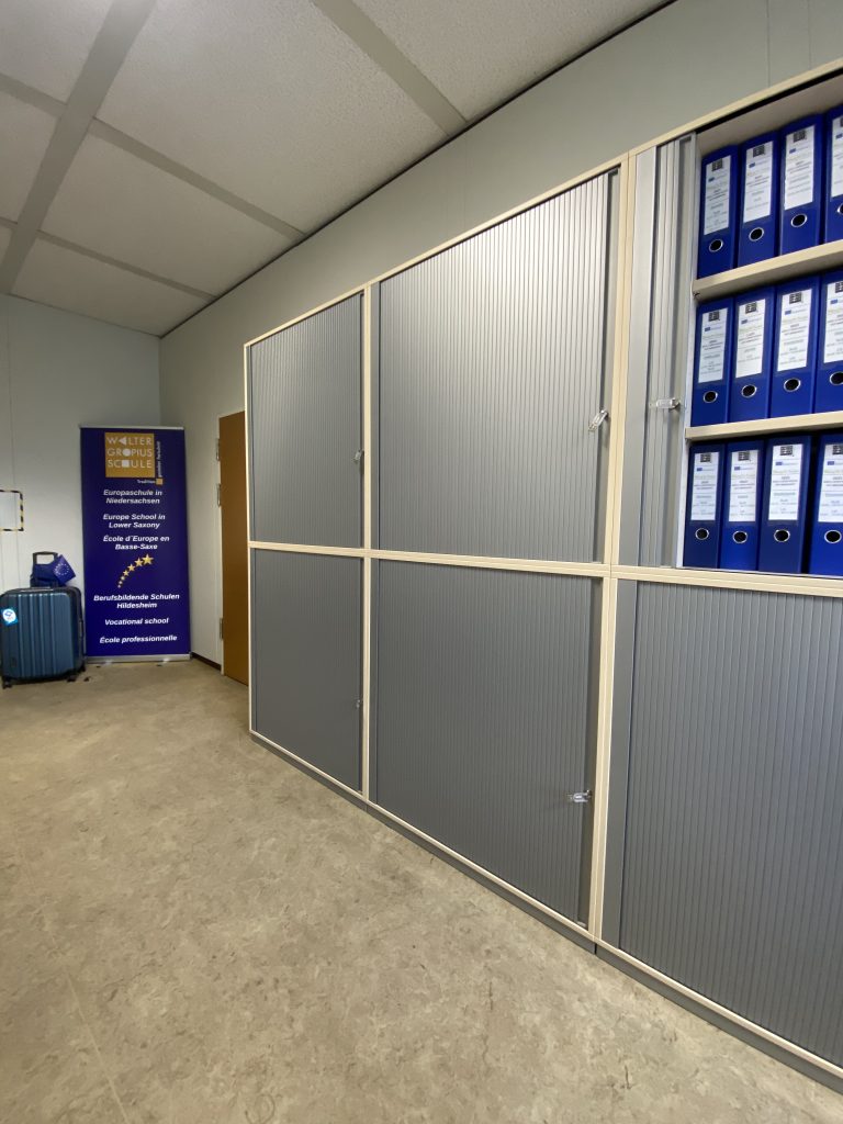 Unser Europabüro wurde neu gestaltet. Es müssen schließlich drei Köpfe zusammen arbeiten können, um all die zahlreichen Mobilitäten vorzubereiten. Daher muss auch die Steuerzentrale angepasst werden. Neben zahlreichen datenschutzsicheren Verstauungssystemen wurde auch ein Schreibtisch geschaffen, der einen direkten Austausch von Timo, Lisa und Rafael ermöglicht.