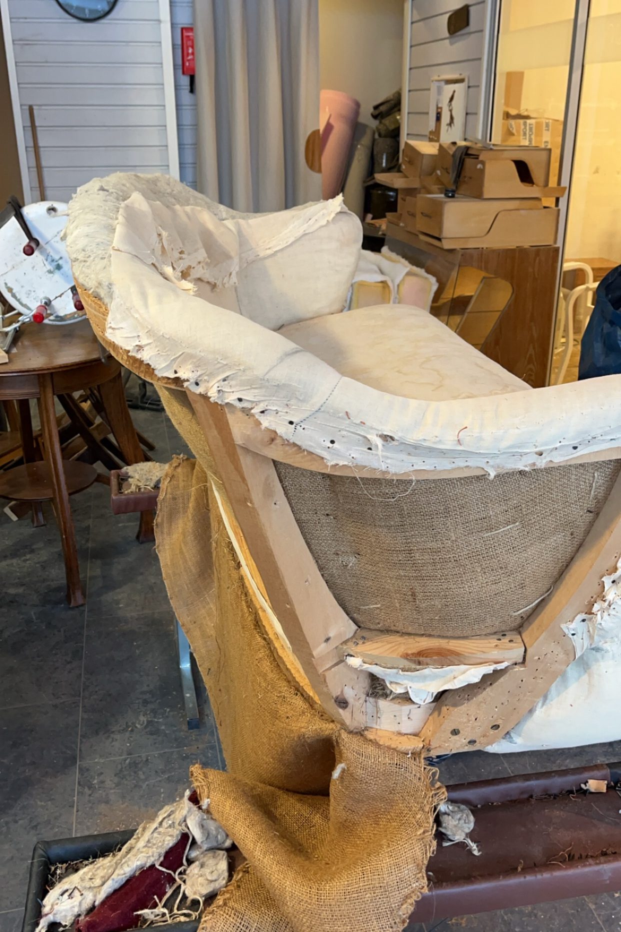 Ich absolviere hier in Finnland ein dreiwöchiges Praktikum in einer Polsterei. Dort habe ich am Dienstag meinen ersten Tag gehabt. Nachdem mir alles gezeigt worden ist, durfte ich mich gleich an die Arbeit machen und anfangen, ein altes Sofa abzupolstern, welches von einem finnischen Designer ist.
