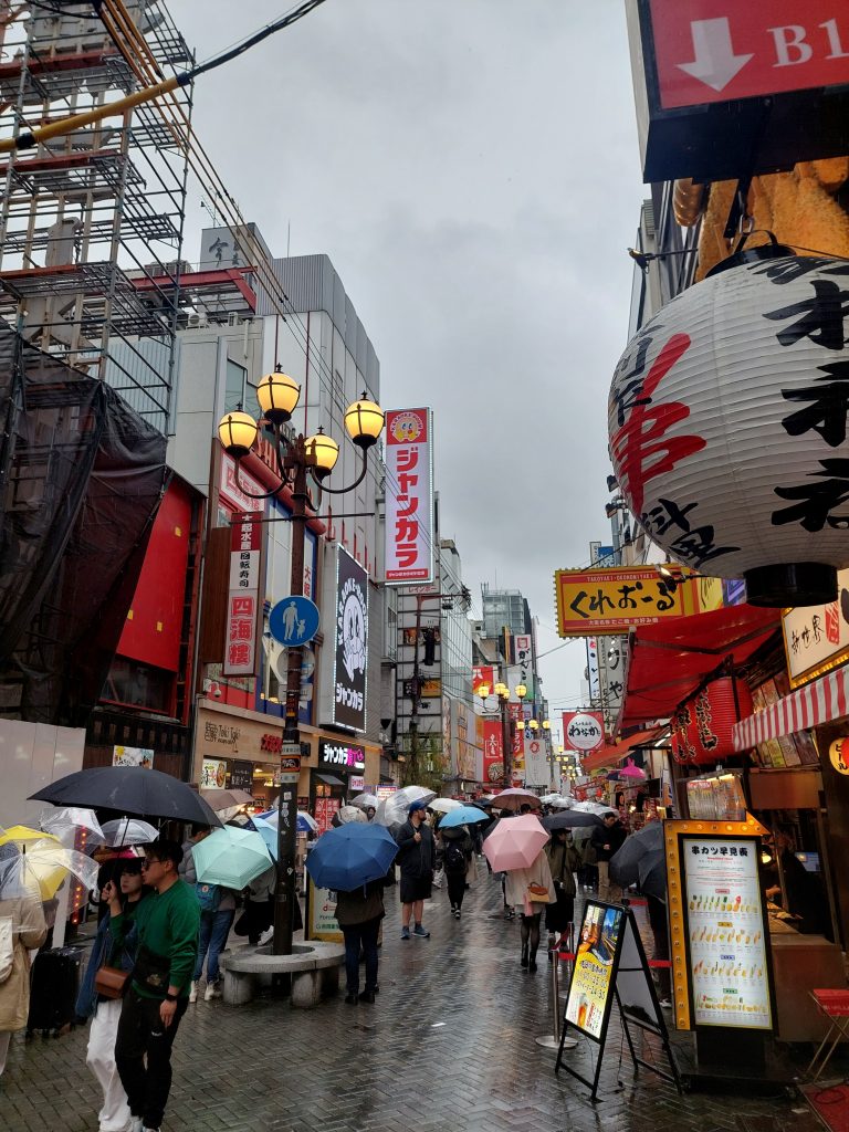 Da es vormittags geregnet hat, habe ich zuerst Dotonburi erkundet, denn dort gibt es viele Möglichkeiten, dem schlechten Wetter zu entfliehen. Egal, ob in den Restaurants, Geschäften, Spielhallen, oder an den unzähligen Ständen in den überdachten Fußgängerzonen, es gibt genügend zu entdecken und zu schlemmen!