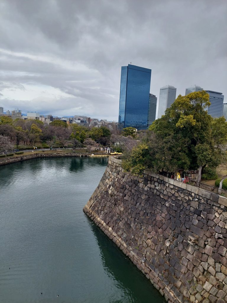 Später begab ich mich zum „Osaka castle“. Nicht nur der 1585 erbaute Hauptturm ist absolut sehenswert, sondern auch die Mauern mit dem bemerkenswerten Burggraben drumherum und auch der 360° Sicht auf die umliegende Stadt. Die Mauern bestehen teilweise aus bis zu 108t schweren, einzelnen Steinen.