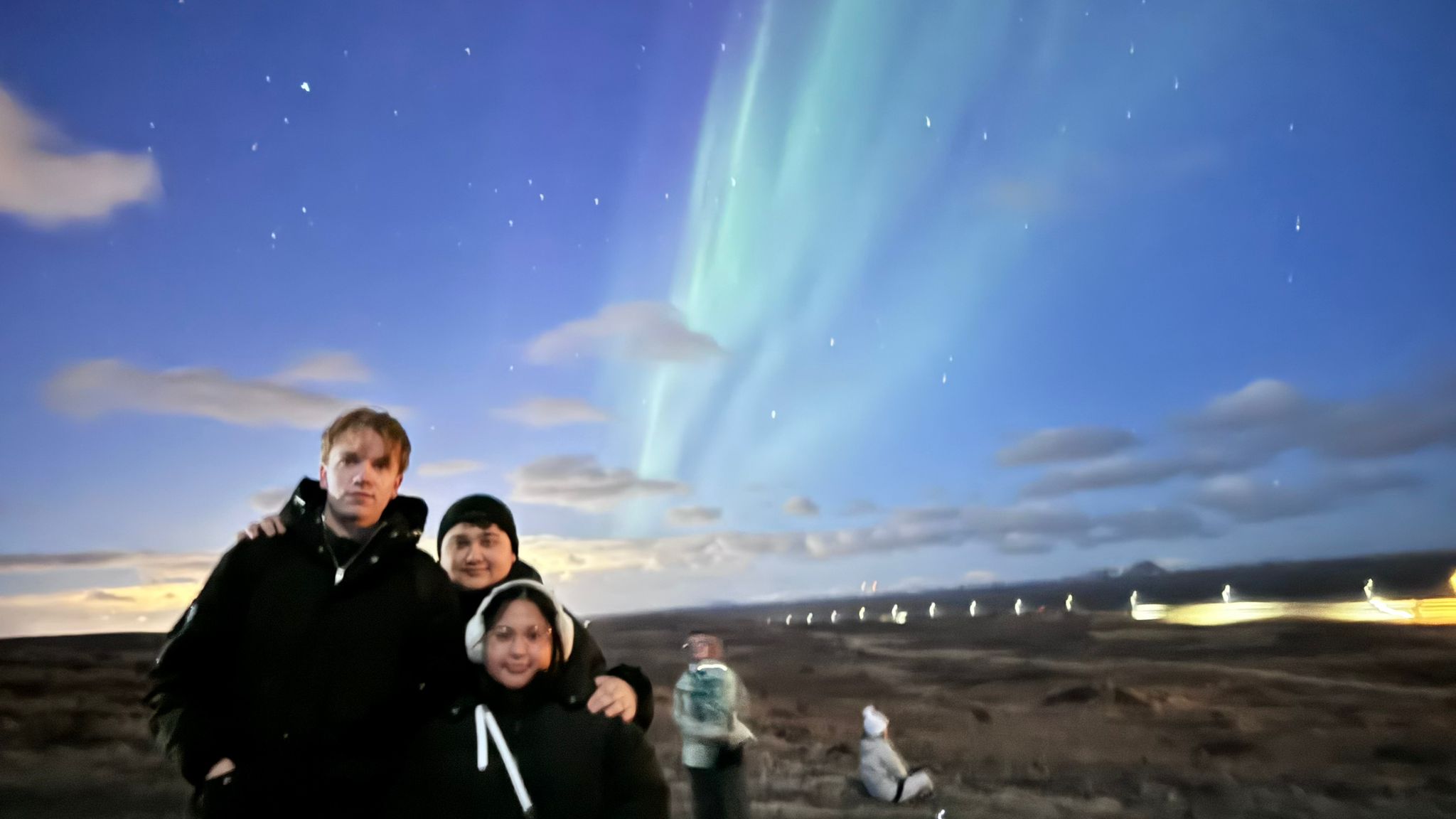 Zuversichtlich gingen wir zu unserem Treffpunkt wo der Bus uns abholte. Nachdem wir aufgrund von Verspätung anderer Touristen 15 Minuten später als geplant losfuhren begann unser Tour-Guide uns einige Sachen zu erklären. Direkt zu Anfang begann er uns zu sagen dass wir egal wo wir halten definitiv Nordlichter zu Gesicht bekommen. Vorfreude bahnt sich auf und als wäre das nicht genug erfahren wir dass wir noch einen Vulkan sehen werden und die Brücke zwischen der Eurasischen- und der Amerikanischen-Tektonischen Platte überqueren werden. Wir konnten es gar nicht glauben es fühlte sich an als hätten wir die Premium Version der Tour gebucht. Wir fuhren in den Süden und zu unserem ersten Stopp war es noch relativ hell, trotzdem konnte man das Erste Nordlicht sehen. Ein Langes Gleichmäßiges Band. Überwältigt standen wir dort und beobachteten unsere ersten Nordlichter und konnten es kaum glauben. Unser nächster Stopp war an einer alten Flugbahn von wo wir einen Gleichmäßigen Bogen über uns wahrnehmen konnte. nur kurze Zeit später fuhren wir auch direkt wieder zu den Tektonischen Platten. Wir dachten nachdem wir die Steigerung vom ersten zum zweien Polarlicht hatten dass es gar nicht mehr besser werden konnte bis wir an unserem dritten und letzten Treffpunkt ankamen. Unser Tour-Guide bezeichnete unser letztes Licht „Corona“ welche ringförmig über den Himmel erstrahlen. Wir konnten unser Glück kaum fassen. Sprachlos standen wir da mit kalten Händen am Fotos schießen, es war magisch. Wir wärmten uns mit einer heißen Schokolade auf und wärmten uns am Lagerfeuer auf bis wir uns zum Spalt zwischen der zwei Tektonischen Platten begeben haben. Angekommen an der Brücke konnte man kaum glauben dass ich soeben zu Fuß von Europa nach Amerika gegangen war. Wir beschlossen am Rand der Brücke runter zu klettern. Alles voller Staub am Boden des Kraters man sickerte mit seinen schuhen bestimmt 7 cm in den Staub doch genau dort standen wir zwischen Europa und Amerika. Wir begaben uns wieder zurück zum Bus, wir fuhren die letzte Stunde glücklich und zufrieden zu unserem Drop-Off bis wir dann um knapp 3 Uhr Nachts wieder in unserer Unterkunft ankamen.