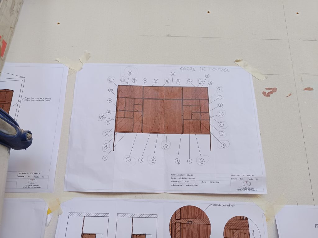 Schrankes,nach Bauplan,den einzelnen Brettern zuzuordnen und zu beschriften.