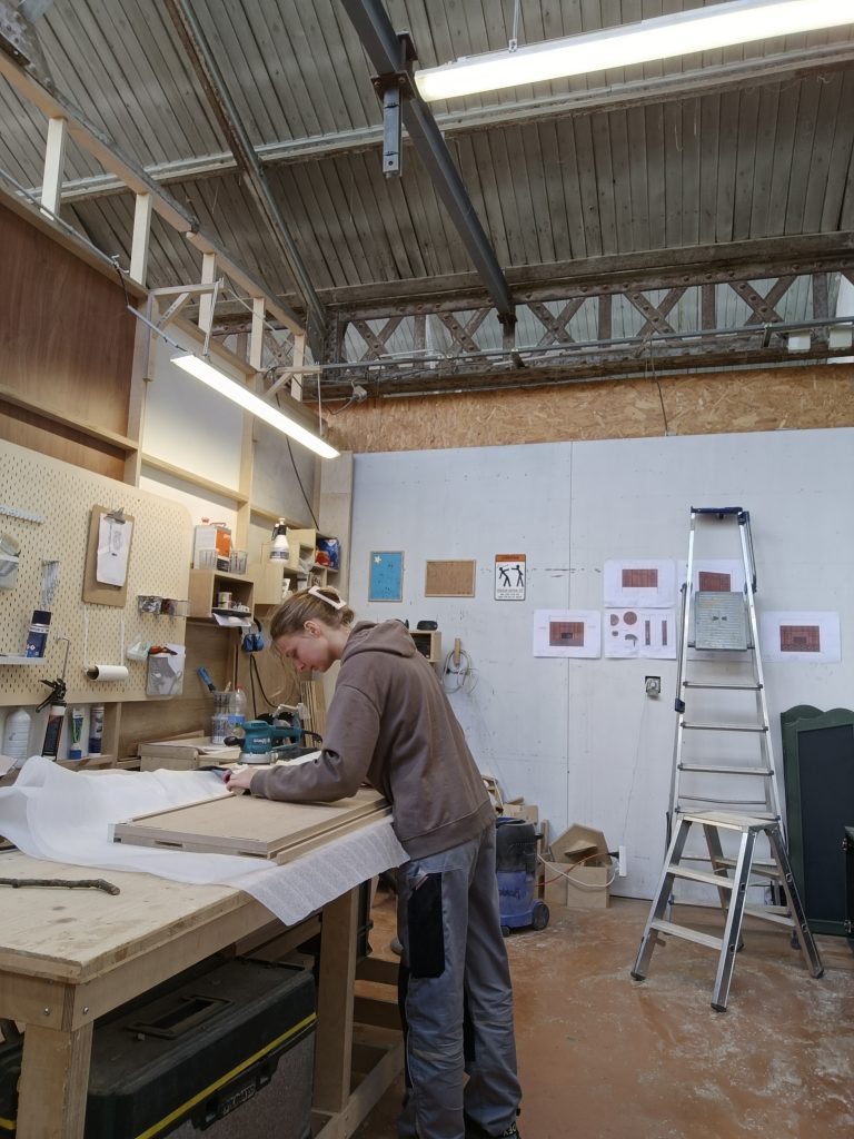 Heute bestand meine Arbeit darin, Bretter mit der Schleifmaschiene zu schleifen.