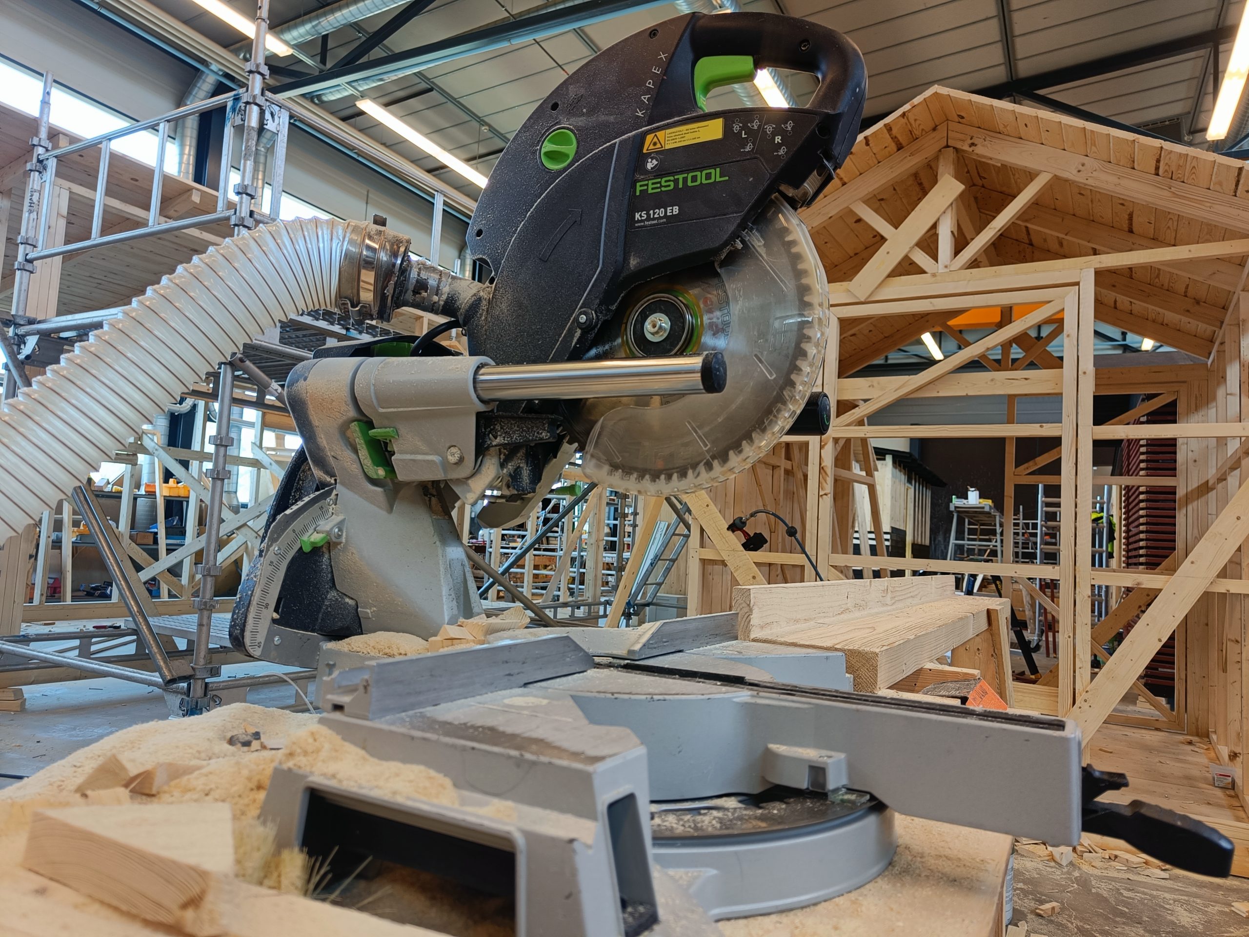 7 Uhr aufstehen, frisch machen, Brote schmieren und 8:15 Unterrichtsbeginn. Endlich ein wenig Normalität. Der erste richtige Arbeitstag begann am Gebäude „E“ der Berufsschule in Uusikaupunki, wo sämtliche im Holztechnikbereich tätigen Auszubildenden betreut werden. Zwei kleinere Klassenräume für das Unterrichten der Hauptfächer und daran anknüpfend eine beeindruckend große Halle mit etwa einer Tonne Metall für die Absaugung an der Decke und drei Mal soviel in Holz, Werkzeug und Schrauben auf dem Fußboden. Ohne schweres Gerät war dort so einfach kein Durchkommen mehr.