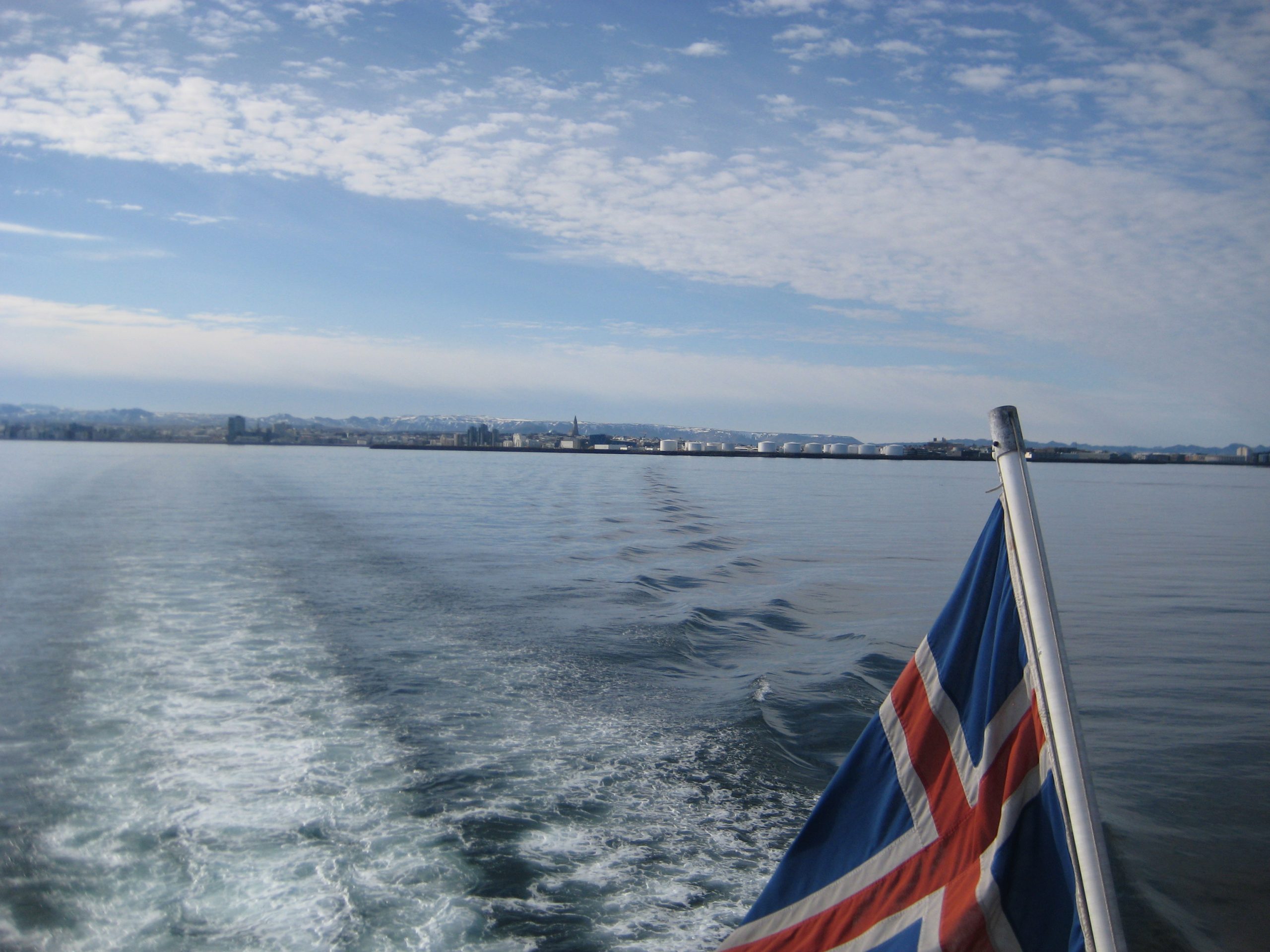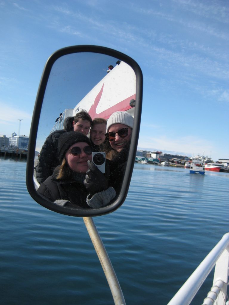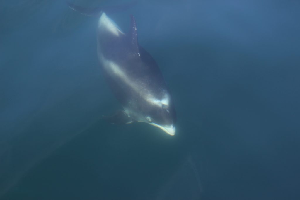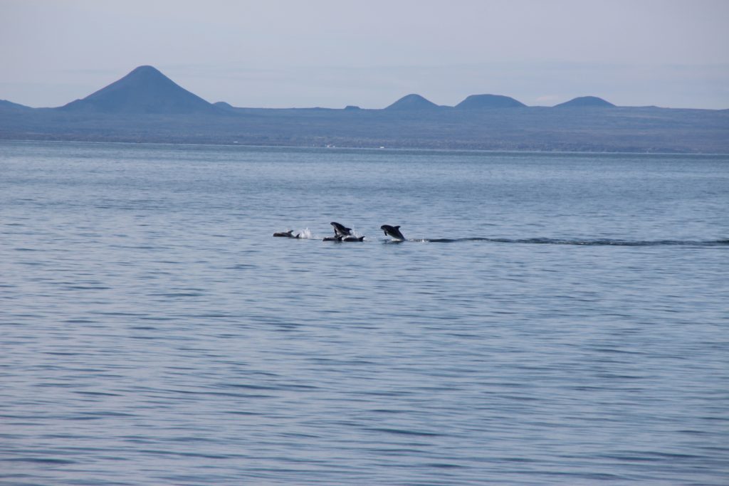 Trotz eines arbeitsfreien Tages quälten wir uns heute morgen um 6:30 Uhr aus dem Bett, um so früh wie möglich aufs Meer hinauszufahren und Wale zu beobachten. Nachdem wir abgelegt hatten und den Hafen hinter uns ließen, sahen wir auch schon die ersten Delfine durchs Wasser tanzen. Die Wale haben auch nicht lange auf sich warten lassen: