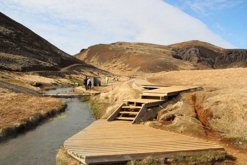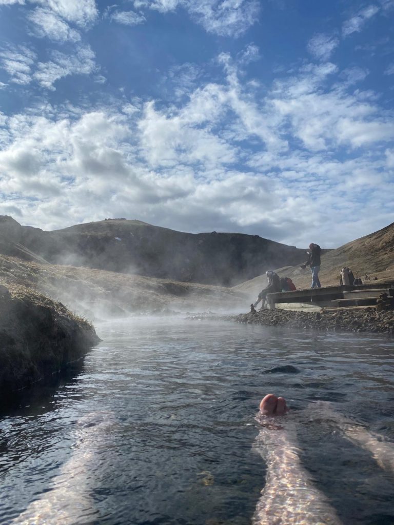 Von tief unten aus dem Meer, ging es für uns nun hoch hinaus in die Berge zu einer heißen Quelle. Wir fuhren zum Reykjadalur Thermal River. Nach einer kurzen Wanderung belohnten wir unseren Körper mit einer „Kreislaufverwirrung“. Von viel Wind und 7°C ging es in die 46°C heiße Quelle: