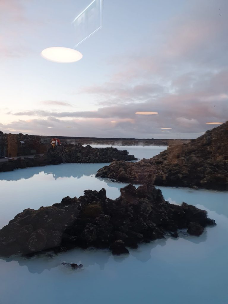 Nach einem erfolgreichen und regnerischen Arbeitstag fuhren wir zum Entspannen in die „Blue Lagoon“. Dort hatten wir noch einmal richtig Glück mit dem Wetter und haben mit beeindruckender Aussicht in 38°C warmen, strahlend blauem Wasser den Tag ausklingen lassen. Auf dem Weg nach Hause haben wir noch einen kurzen Halt an einem Lavafeld gemacht, wo wir „frische“ Lava und einen tollen Sonnenuntergang sehen konnten.