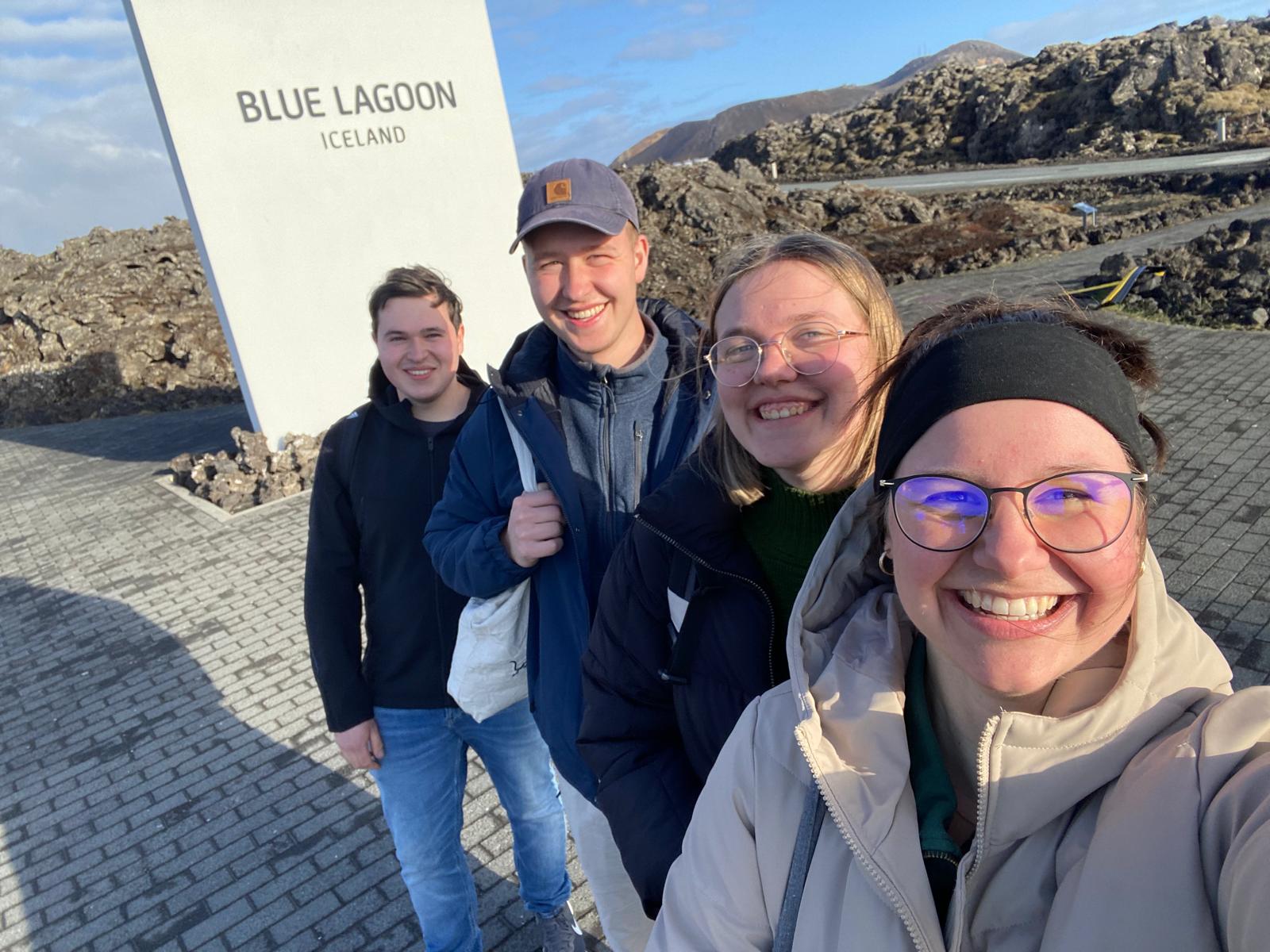 Nach einem erfolgreichen und regnerischen Arbeitstag fuhren wir zum Entspannen in die „Blue Lagoon“. Dort hatten wir noch einmal richtig Glück mit dem Wetter und haben mit beeindruckender Aussicht in 38°C warmen, strahlend blauem Wasser den Tag ausklingen lassen. Auf dem Weg nach Hause haben wir noch einen kurzen Halt an einem Lavafeld gemacht, wo wir „frische“ Lava und einen tollen Sonnenuntergang sehen konnten.