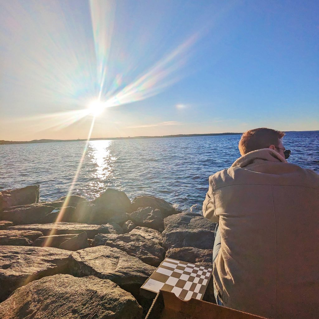 Unser Abendessen ließen wir uns an der Küste von Tampere zum angrenzenden See schmecken, während wir bei einer sanften Brise der untergehenden Sonne entgegensahen.