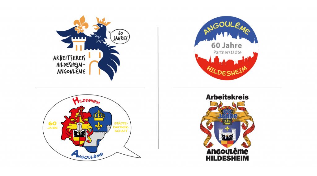 Seit fast 60 Jahren besteht die Städtepartnerschaft zwischen Hildesheim und Angoulême. Zeit, dass sich der Arbeitskreis dieser Partnerschaft ein Logo gibt. Den Auftrag für die Gestaltung dieses Logos hat das aktuelle zwei Ausbildungsjahr der Mediengestalter*innen unserer Schule bekommen.