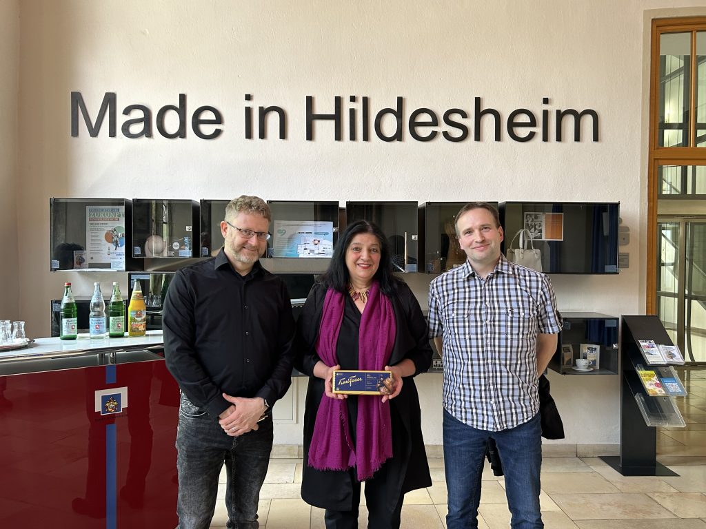 Am 6. Februar 2024 öffnete das Rathaus von Hildesheim seine Türen für eine besondere Begegnung: Bürgermeisterin Beate König hieß herzlich die Lehrkräfte Lasse Alisaari und Jani Honkaselkä aus der Berufsschule Novida in der Stadt Loima, Finnland, willkommen. Die beiden waren auf einer Mission des Austauschs und der Zusammenarbeit, begleitet von den Lehrkräften Rafael Meyer und Lasse Althaus von der Walter-Gropius-Schule.