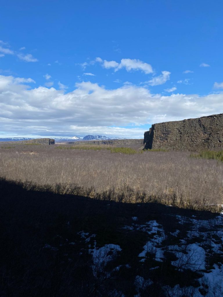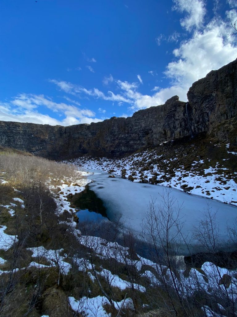 Nach dem Check-out aus dem Hostel ging es bei unserer Rundreise weiter. Wir fuhren 160km Richtung Norden zu unserem ersten Stopp des Tages Ásbyrgi, eine Schlucht mit einer Form eines Hufabdrucks. Zu der Entstehung gibt es mehrere Theorien: die wahrscheinlichste Theorie ist, dass die Ausläufer aus eiszeitlich aufgestauten Stauseen stammen. Von dort aus fuhren wir weiter.