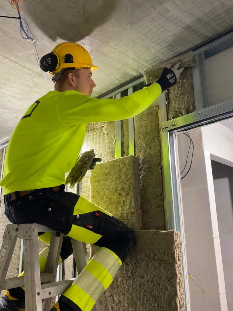 Nach unserem kleinen Roadtrip holte uns der Alltag heute wieder ein. So machten wir uns um 7 Uhr auf den Weg zur Arbeit. Heute stand auf unserem Plan, die Trockenbauwand des Hotels mit Steinwolle auszustopfen. Nach der Frühstückspause besorgten wir die Wolle und verteilten sie in der ersten und zweiten Etage. Danach stopften wir die Wolle passförmig in die Zwischenräume des Ständerwerkes. Nach dem Mittag fingen wir an die erste mit Steinwolle gedämmte Trockenbauwand mit Gipskartonplatten zu schließen.