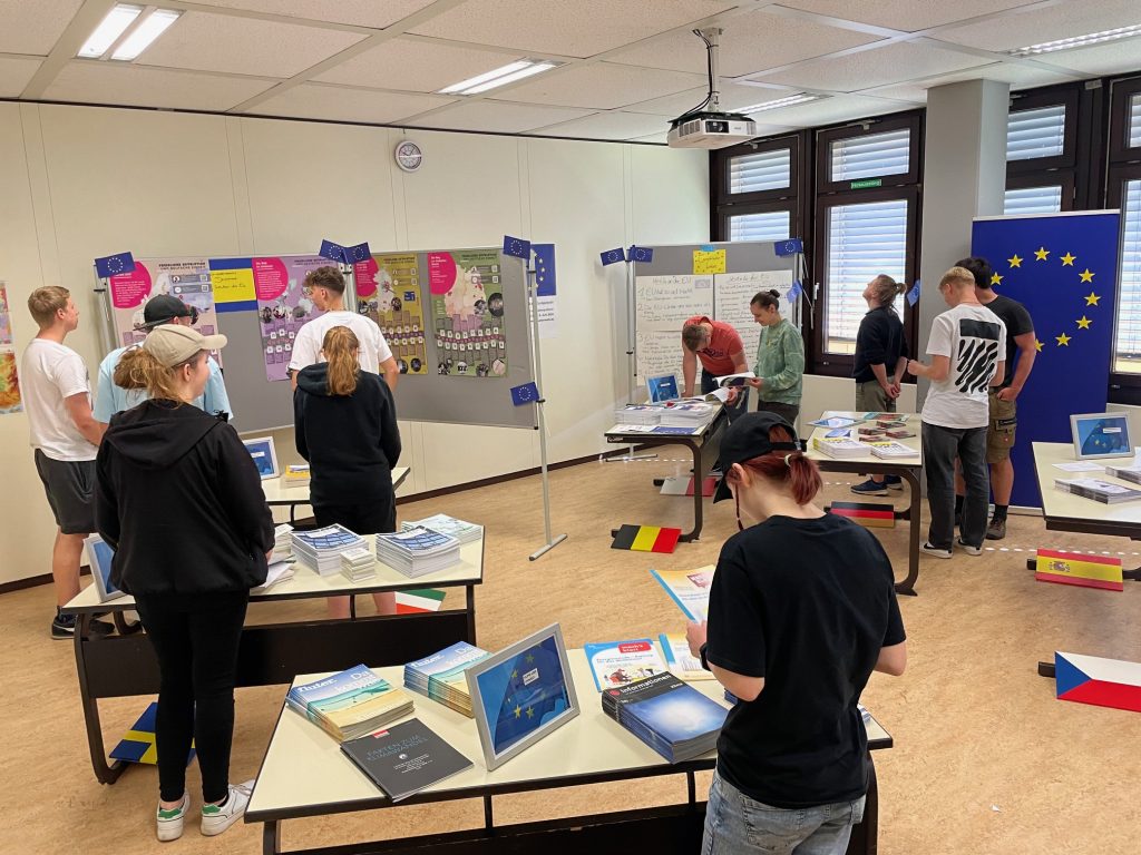 auch in diesem Jahr starten wieder die Europatage in der Walter-Gropius-Schule. In diesem Jahr gibt es einen Europaraum mit Materialien zu den Themen wie beispielsweise Migration, Rechtsextremismus, Sicherheit oder auch der Gründung Europas. Durch die freie Auswahl der Materialien, steht der Unterricht ganz unter dem Motto „Euer Unterricht“.