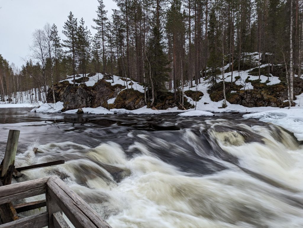 Auttiköngäs zählt zu einem der spektakulärsten Wasserfälle Finnlands und liegt inmitten eines Taigawaldes. Auf dem Naturpfad geht man entlang des Auttijoki (einem Fluss) und des Könkäänvaara (einem 240 m hohen Hügel). Man kommt vorbei an einer gemütlichen Schutzhütte und einem Aussichtsturm und kann auf die Taiga des Waldes blicken.