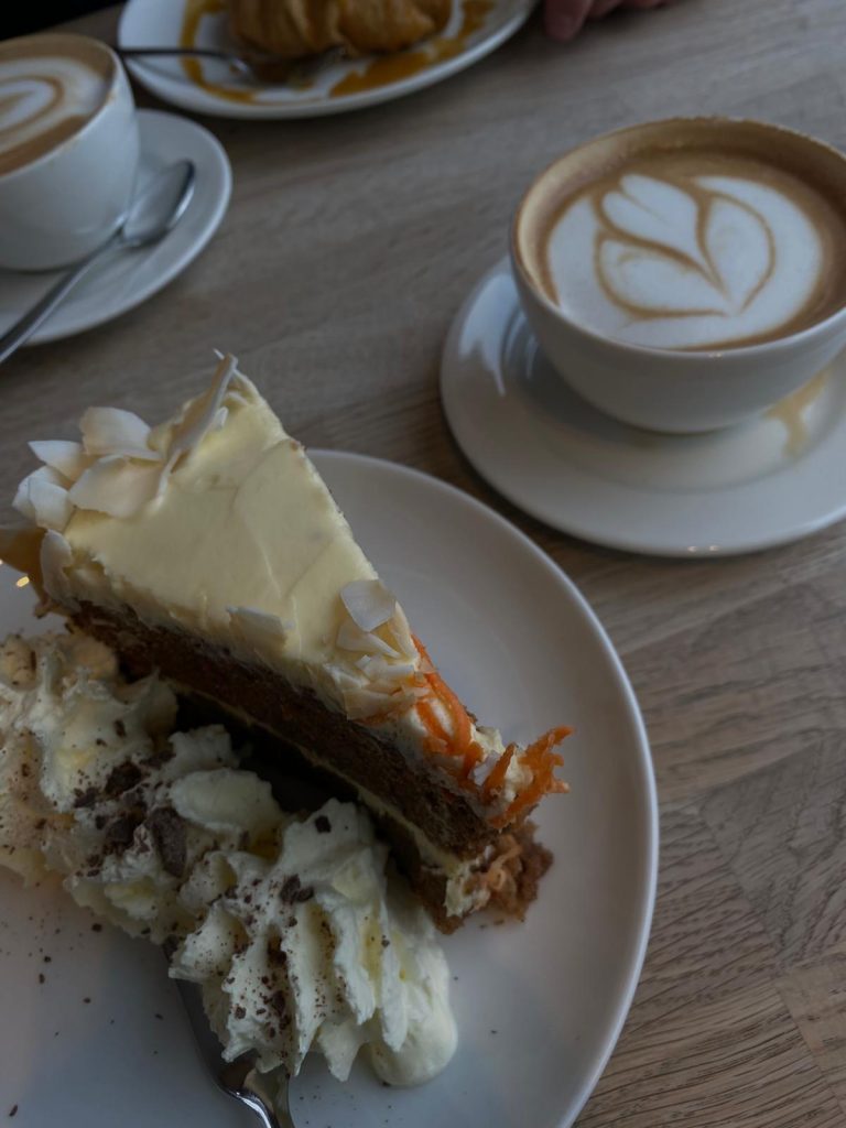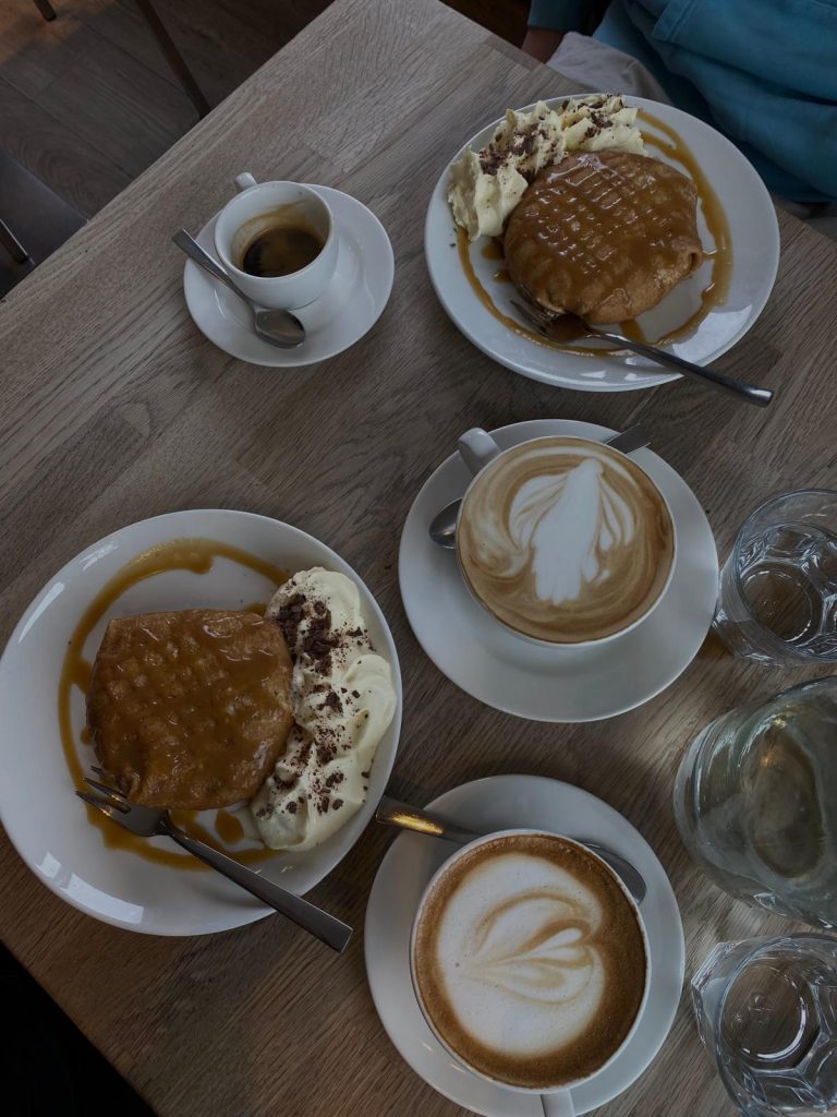 Um etwas Abwechslung in unseren Arbeitsalltag zu bringen, zogen wir uns noch auf der Arbeit um und fuhren nach Reykjavik. Dort waren wir zu Besuch im Restaurant und Café Loki, welches für isländische Spezialitäten bekannt ist, und genossen einen guten Kaffee und tollen Kuchen. Anschließen spazierten wir noch einmal durch die Stadt und genossen die Sonne, die langsam den Regen weg schob.