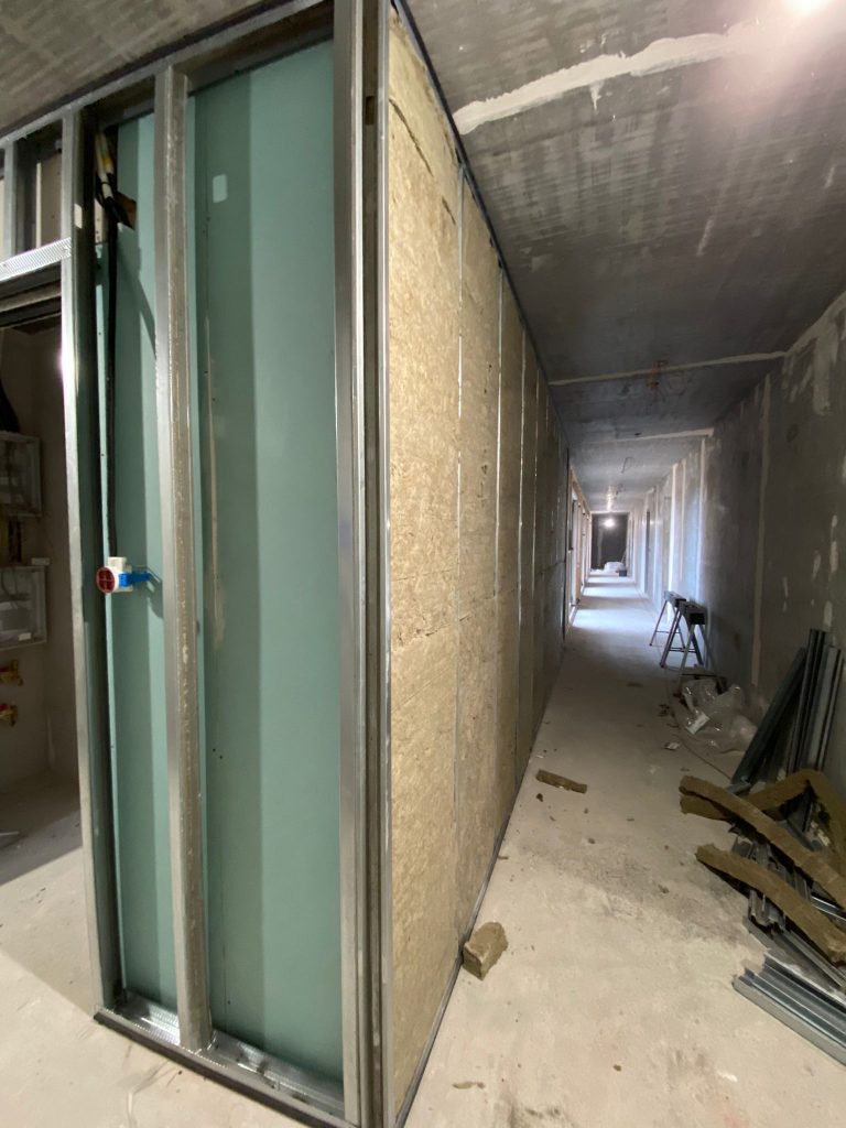 …Auch heute ging es für uns wieder auf den Bau. Unser Tag bestand, wie auch die letzten Tage, aus dem Zuschnitt der Stahlprofile und dem Dämmen der Wände mit Steinwolle.