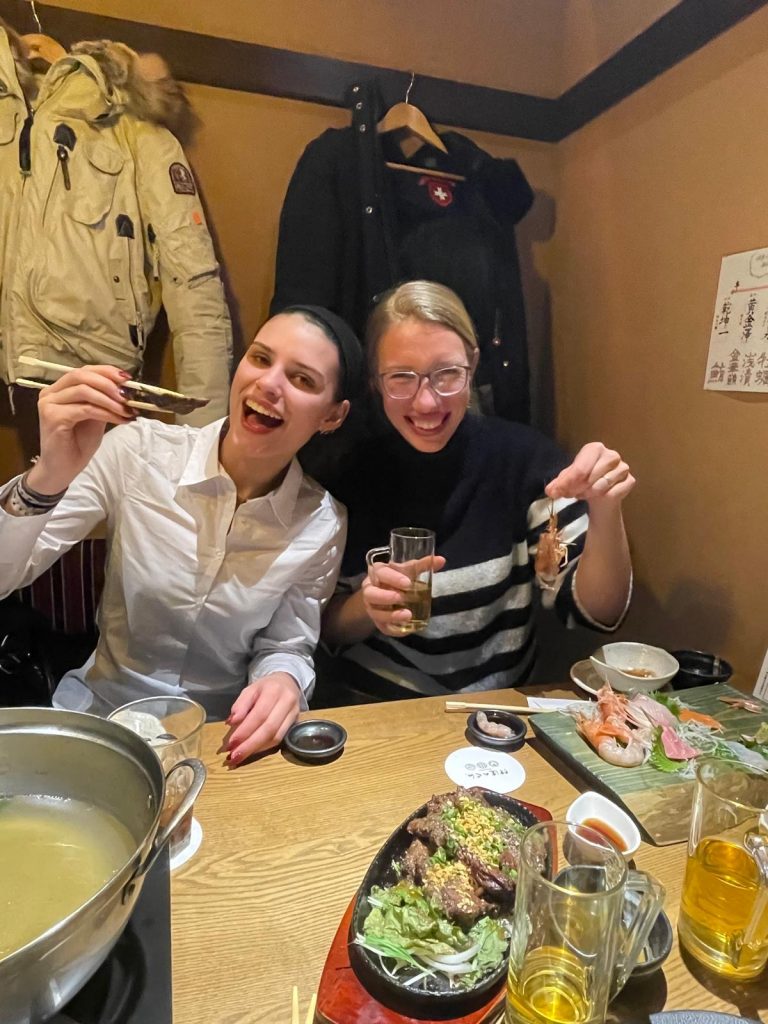 Unser erster Reisetag ist mit einem gemeinsamen Abendessen in Sendai ausgeklungen. Neben dem traditionellen Hot Pot, den Sashimi und Gyoza wurde auch die in Sendai ansässige Ochsenzunge in verschiedenen Variationen probiert. Fazit: Schmeckt richtig gut!
