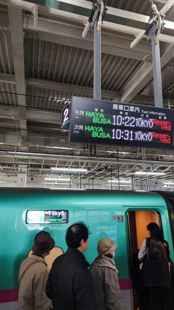 Auf dem Weg startet bereits das erweiterte interkulturelle Training: Vom Geld wechseln über das Anstehen in der richtigen Schlange, Zugtickets buchen, Zug fahren und der allgemeinen Orientierung am Bahnhof, in dem alles auf Japanisch ist, bis hin zum Einkaufen im Kombini (Supermarkt) und Taxi fahren wurden alle Challenges erfolgreich gemeistert und wir sind wohlbehalten in Sendai angekommen.