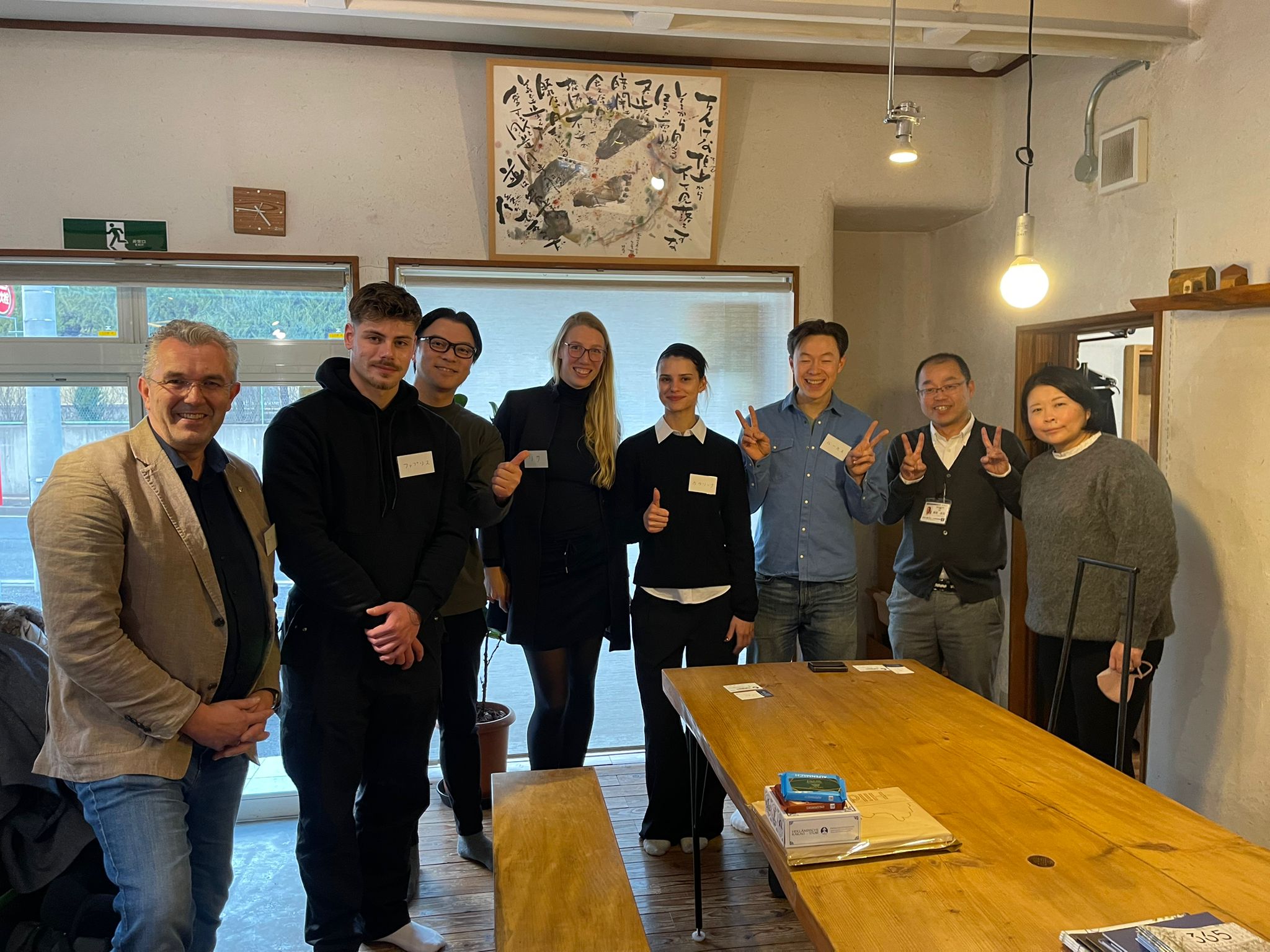 Wir wurden sehr freundlich zu einem gemeinsamen Meeting empfangen. Gemeinsam mit Tetsuya Ohno san aus der Firma Kenchikoubou Zero und dem Verein Chikyunokai (vergleichbar mit einer deutschen Innung) sowie Yamasaki san auch von Chikyunokai und Ozaki san von der Firma Kenchikoubou Zero wurden unsere Azubis in ihren neuen Arbeitsplatz begleitet. Ihnen wurde erklärt, dass es einen Senpai (ähnlich einem Gesellen) gibt, der für die Belange des Kohai (Lehrling oder Dienstjüngere Person) zuständig ist. Dies betrifft dabei nicht nur das gemeinsame Arbeiten, sondern auch die Freizeit, sodass beide Azubis nun beste Ansprechpartner vor Ort haben. Auch bei unserer Übersetzerin Risa san möchten wir uns sehr herzlich bedanken, da sie uns mit Rat und Tat zur Seite steht!