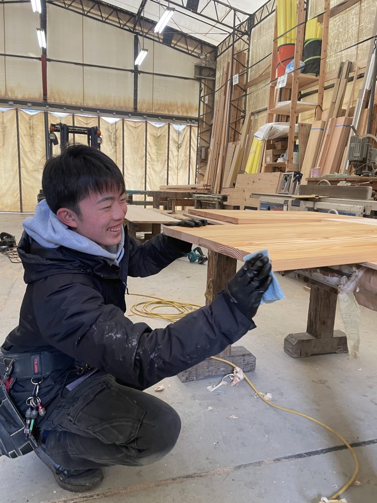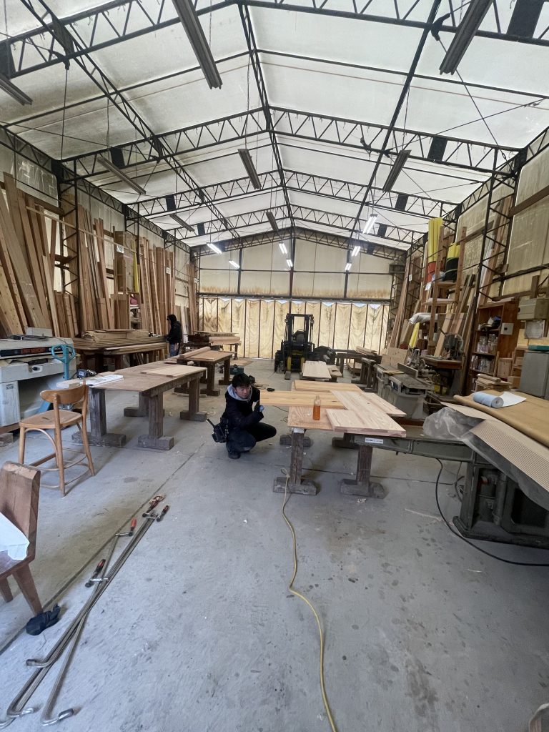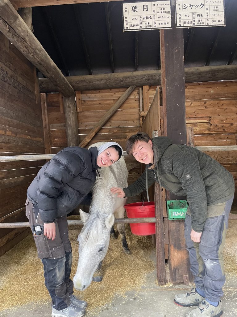 Zum Glück gab es nachmittags einen wundervollen Ausgleich zu dem etwas härteren Vormittag. Überrascht wurden wir nämlich mit der Nachricht, dass wir das Gelände mit der Holzwerkstatt und dem Materiallager besichtigen sollten. Das Tolle ist daran, dass der Chef Ono-san auf dem Gelände einen kleinen idyllischen „Streichelzoo“ mit Grillplatz, Terasse und heißem Badebecken besitzt. So hatten wir die Möglichkeit einen Vergleich zu unseren Werkstätten zu ziehen und vier Pferde und zwei Ziegen zu streicheln. 🐎 🐐