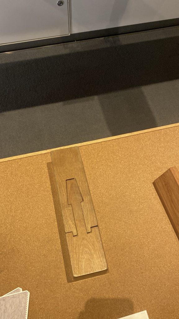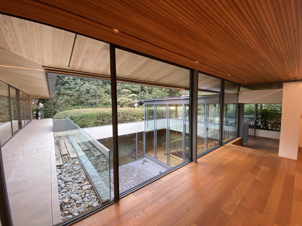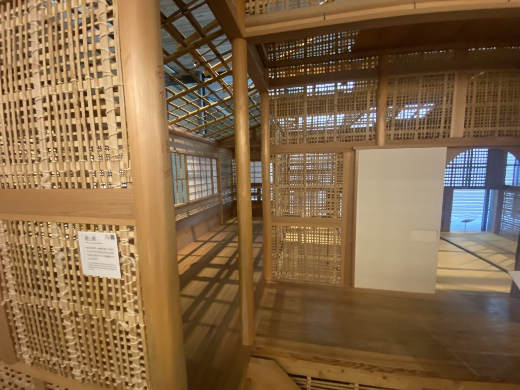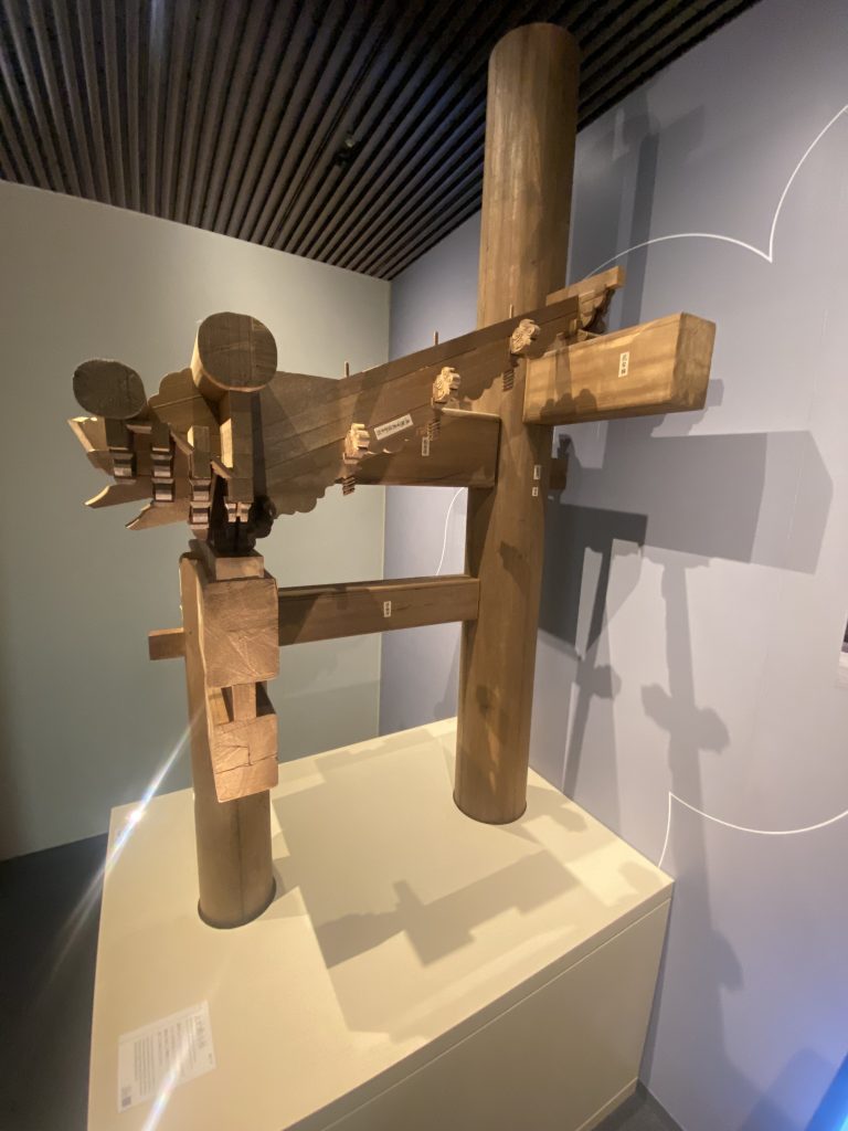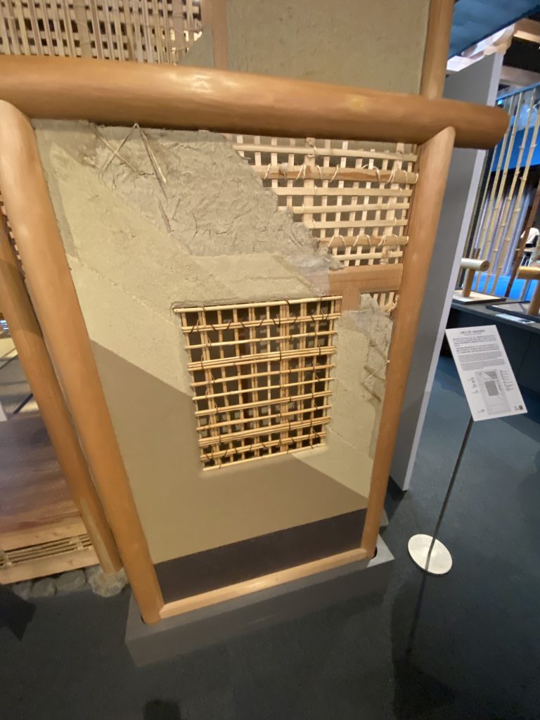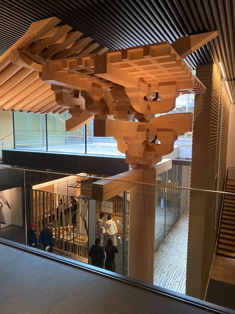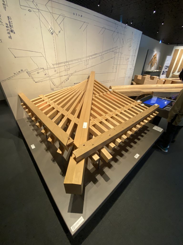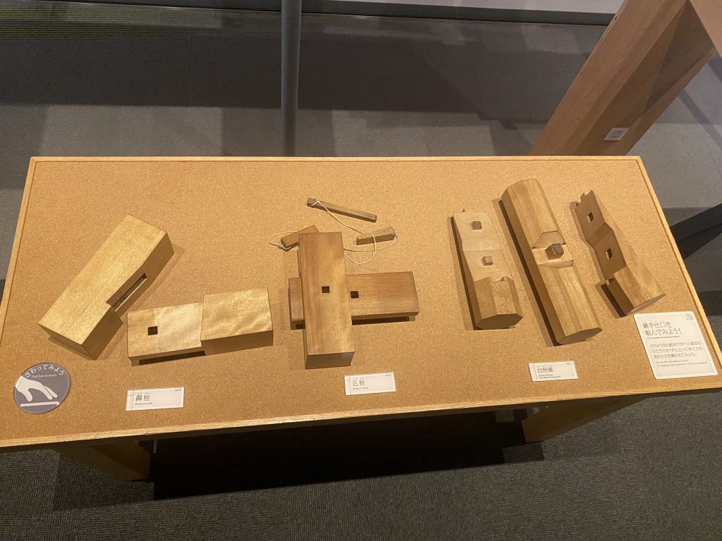 Auch verschiedene zum Teil hochkomplizierte, dreidimensionale Holzverbindungen und traditionelle Holzarten wurden vorgestellt. Der Schwerpunkt der in Japan verwendeten Hölzern liegt hier eindeutig auf den Nadelhölzern. Zum Teil wird jedoch auch Eichen- und Kastanienholz verwendet. Jedoch fällt deutlich bei den zahlreichen Zugfahrten auf, dass vornehmlich Nadelbäume in den Wäldern vorzufinden sind. Am häufigsten sind vor allem die Kiefern, Hinoki-Scheinzypressen, Pinien und Zedern (Sugi) aufzufinden. Bambus wird vornehmlich für eine Art Unterkonstruktion für Lehmwände, ähnlich unserem Fachwerk verwendet.Nicht nur die Ausstellung im Museum war sehr informativ, auch das Gebäude mit seinem umfassenden japanischen Garten ist architektonisch sehr ansprechend, elegant und minimalistisch und wirkt dadurch in seiner Umgebung sehr unaufdringlich.
