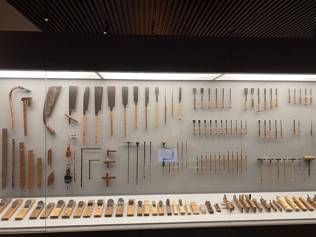 Das Museum zeigt verschiedene Werkzeuge wie Stemmeisen, Hobel, Ziehklingen und -messer, Hammer und Sägen.