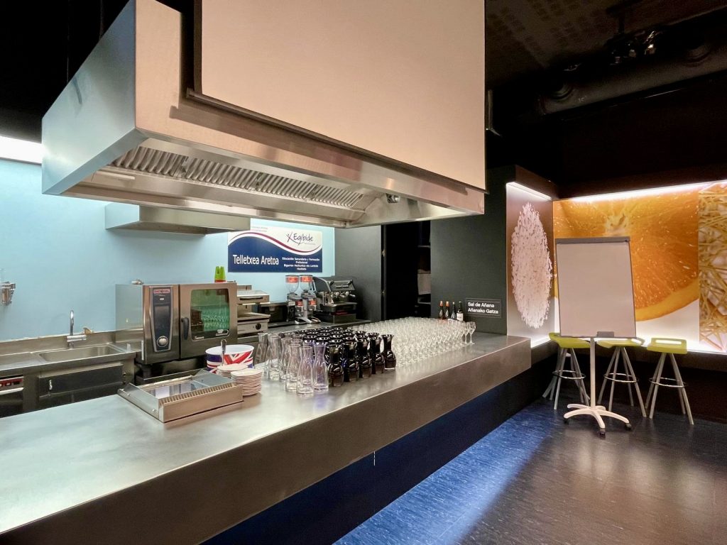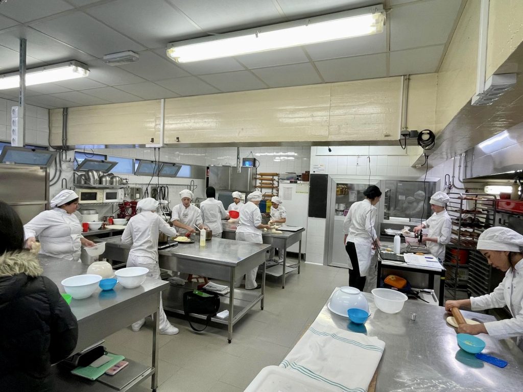 Dieser Standort war besonders spannend, da hier der Bereich Ernährung und Gastronomie unterrichtet wird. Die Schule ist in einem ehemaligen Sportzentrum untergebracht, in dem unter anderem das traditionelle Pelota gespielt wird und regelmäßig Turniere stattfinden. Das historische Gebäude wurde erweitert und dient heute nicht nur als Ausbildungsstätte, sondern auch als Restaurant und Veranstaltungsort, wo die Schülerinnen und Schüler in der Küche und im Service arbeiten. Täglich wird hier ein Mittagessen angeboten, bei dessen Zubereitung die Schülerinnen und Schüler aktiv mitwirken. Vom 1. bis zum 3. Ausbildungsjahr wird von Montag bis Freitag jeder Tag abgedeckt. Zusätzlich gibt es noch einen Bereich für die Bäckerei und Konditorei.