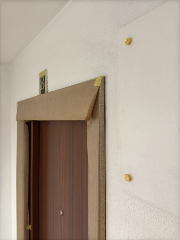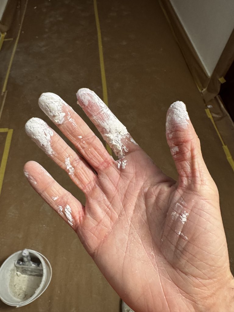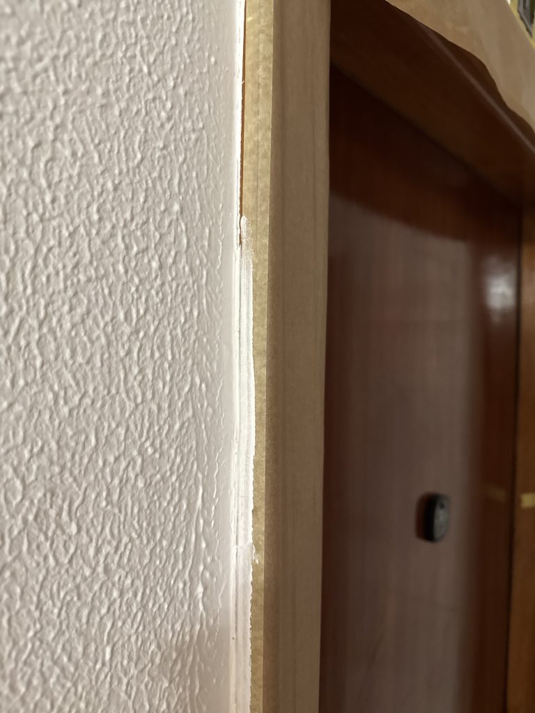 Danach gab es gleich die nächste Überraschung. Ich durfte die Türzargen verfugen. Soweit, so bekannt. Aber nicht mit einer Acryl-Kartusche, sondern mit Gipsspachtel! Dabei wird einfach ein wenig vom Spachtel auf den Finger geschmiert und damit dann durch die Ecke gegangen. Ich brauchte erstmal eine Weile, bis ich mich an den vielen Gips an den Händen und das etwas andere Verfahren gewöhnt habe. Gegen Nachmittag hab ich Mobeen wieder beim Abkleben unterstützt, bis auch dieser interessante Tag vorbei war.
