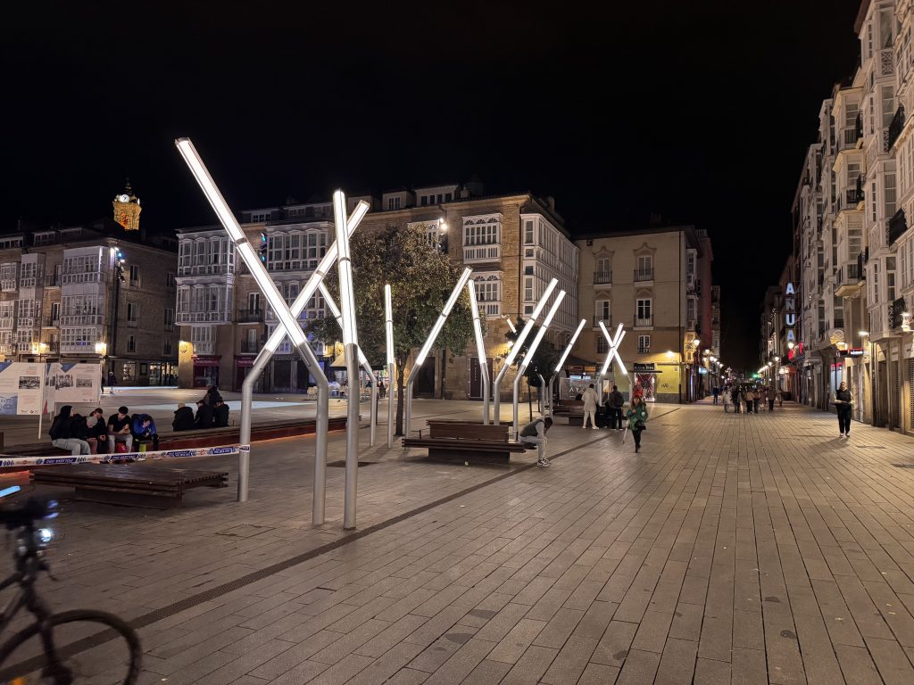 Ab 21 Uhr hab ich dann noch mit Mobeen und seiner Freundin einen sehr netten Abend verbracht. Wir haben uns in einer Bar getroffen und ein paar Tapas gegessen und sind danach durch die Altstadt von Vitoria Gasteiz bei Nacht gegangen. Viele Gebäude werden mit Scheinwerfern beleuchtet, was die Stadt in der Dunkelheit erstrahlen lässt.
